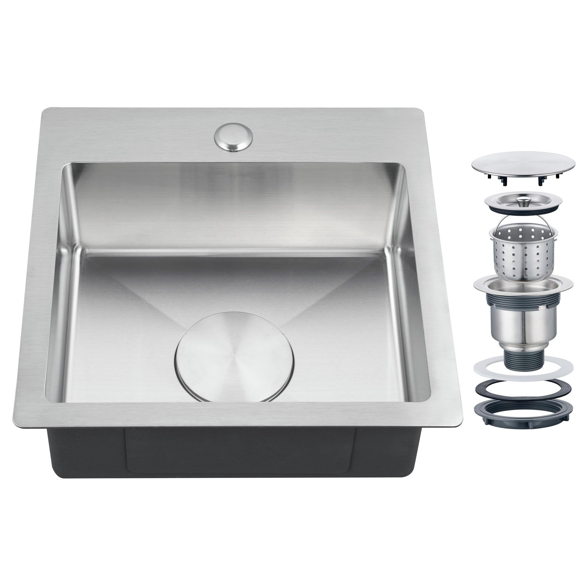 LBTBDBN 15x15 inch Small Kitchen Sink - Drop In Bar Sink for RV, Wet Bar & Compact Spaces, Brushed Stainless Steel 18 Gauge Topmount Single Bowl Utility Sink