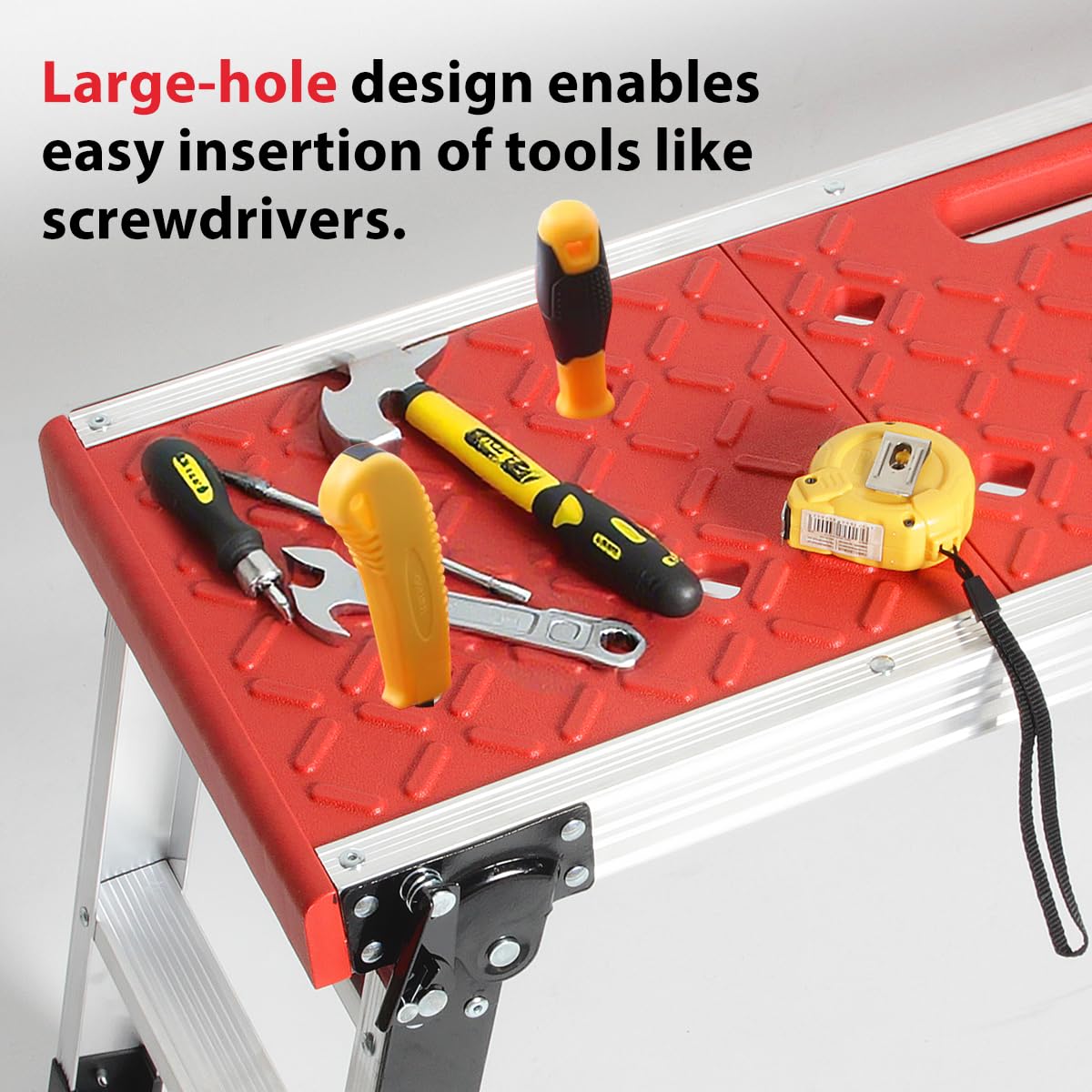 LEADALLWAY Folding Work Platform with Anti-Slip Feet Cover, Practical Step Ladder for Home Garage, Maximum Load 330lbs, Red