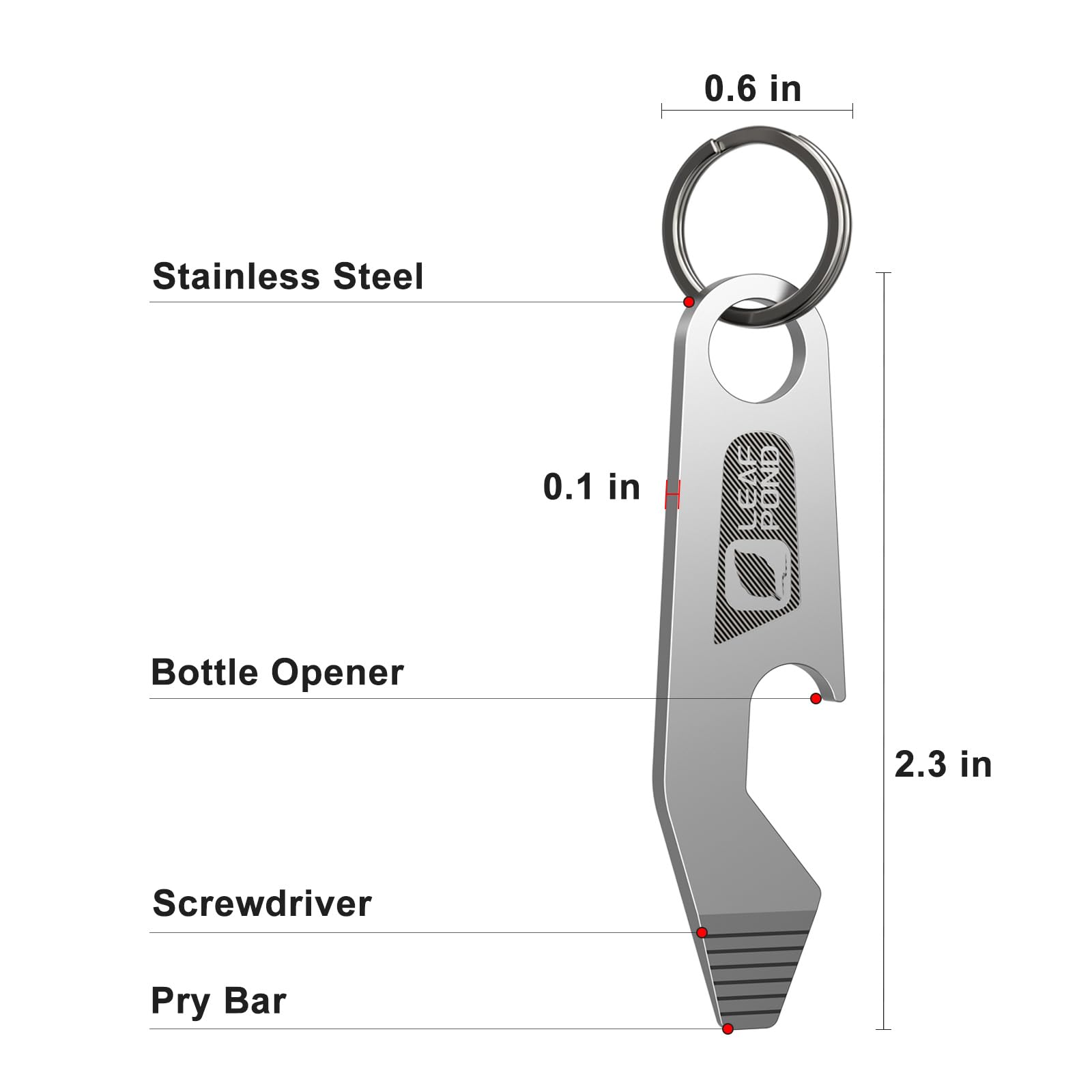 - 【All-in-One Everyday Tool】These EDC multitools offer five handy features: a bottle opener, flathead screwdriver tip, mini pry bar, can opener, and package opener.