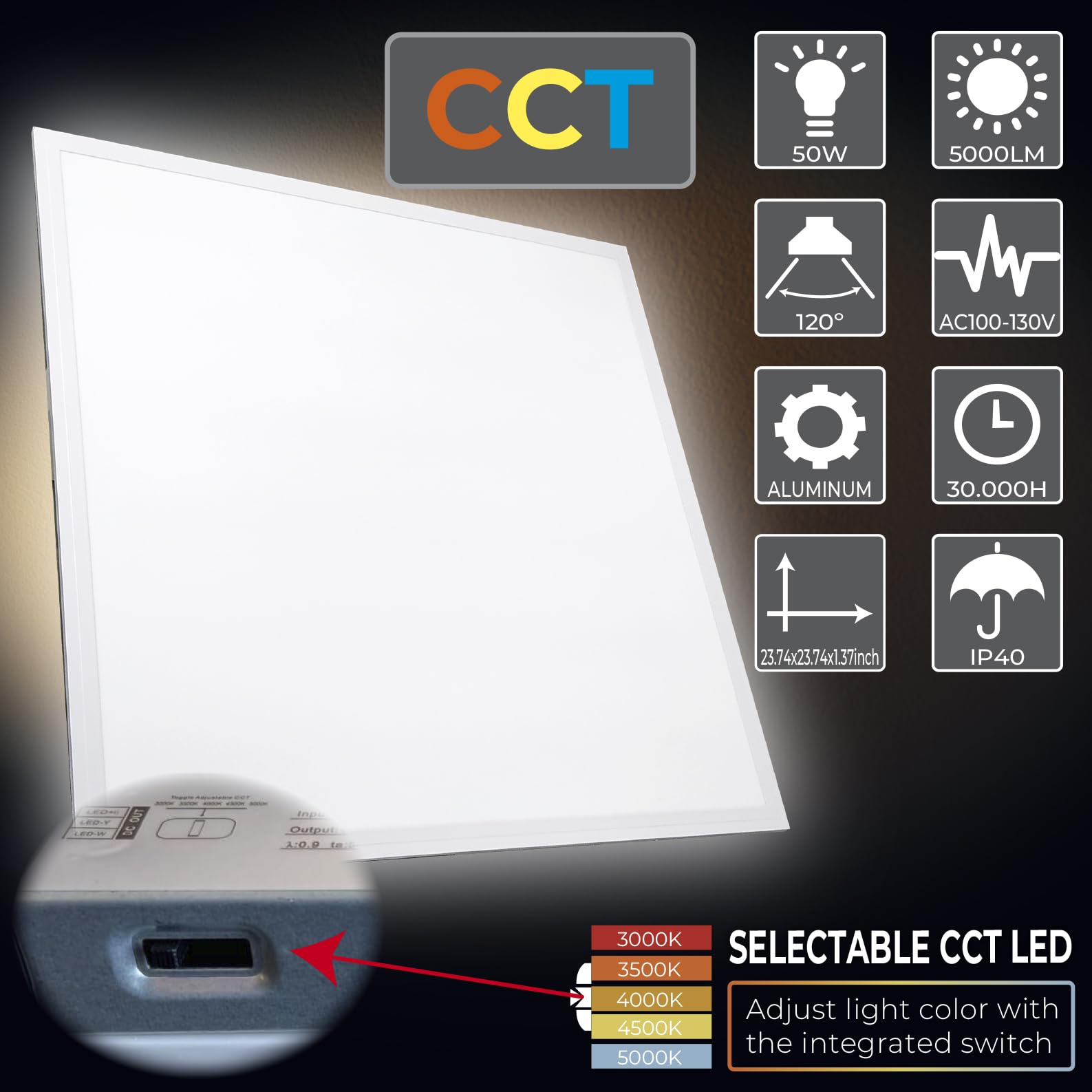 - [Selectable Power] It is possible to adjust the panel power according to your needs: 30W, 35W, 40W, 45W, 48W. It is also compatible with 0-10V dimmers.