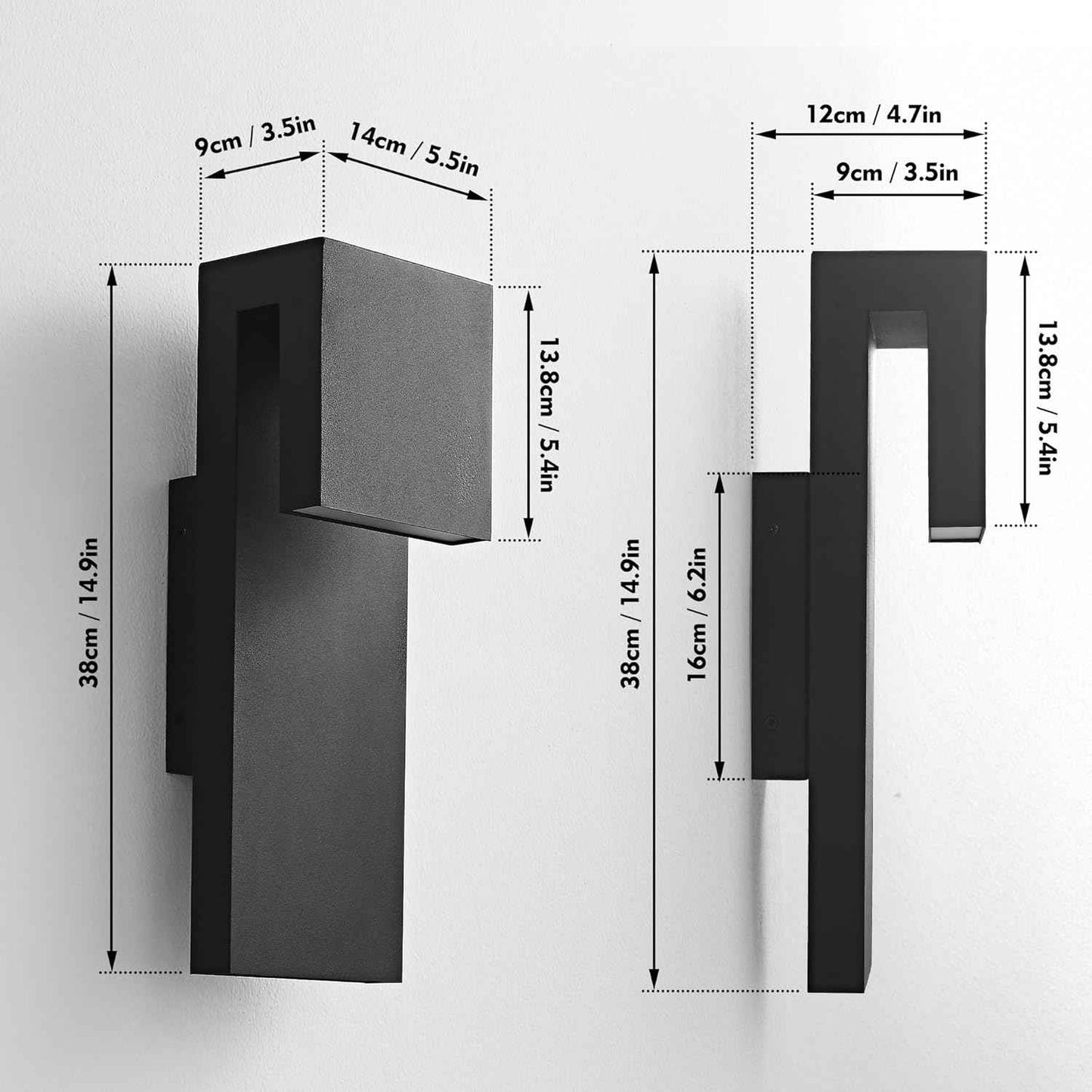 - 【Easy Installing】Black exterior light fixtures are hardwired for installation.Light Size: 5.5 x 15 x 4.7 inch. You need to drill holes and fix with screws for installing. The front wall light can be mounted vertical or horizontal to suit the indoor and outdoor decorations.