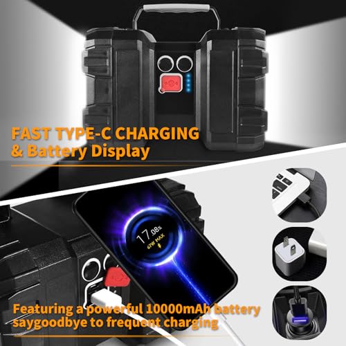 LED Spotlight Flashlight,Rechargeable Flashlight 4000LM 10000mAh High-Powered Spotlight Flashlight Searchlight Camping 3+4 Lights Modes LED Handheld Flashlight Waterproof with Output as a Power Bank