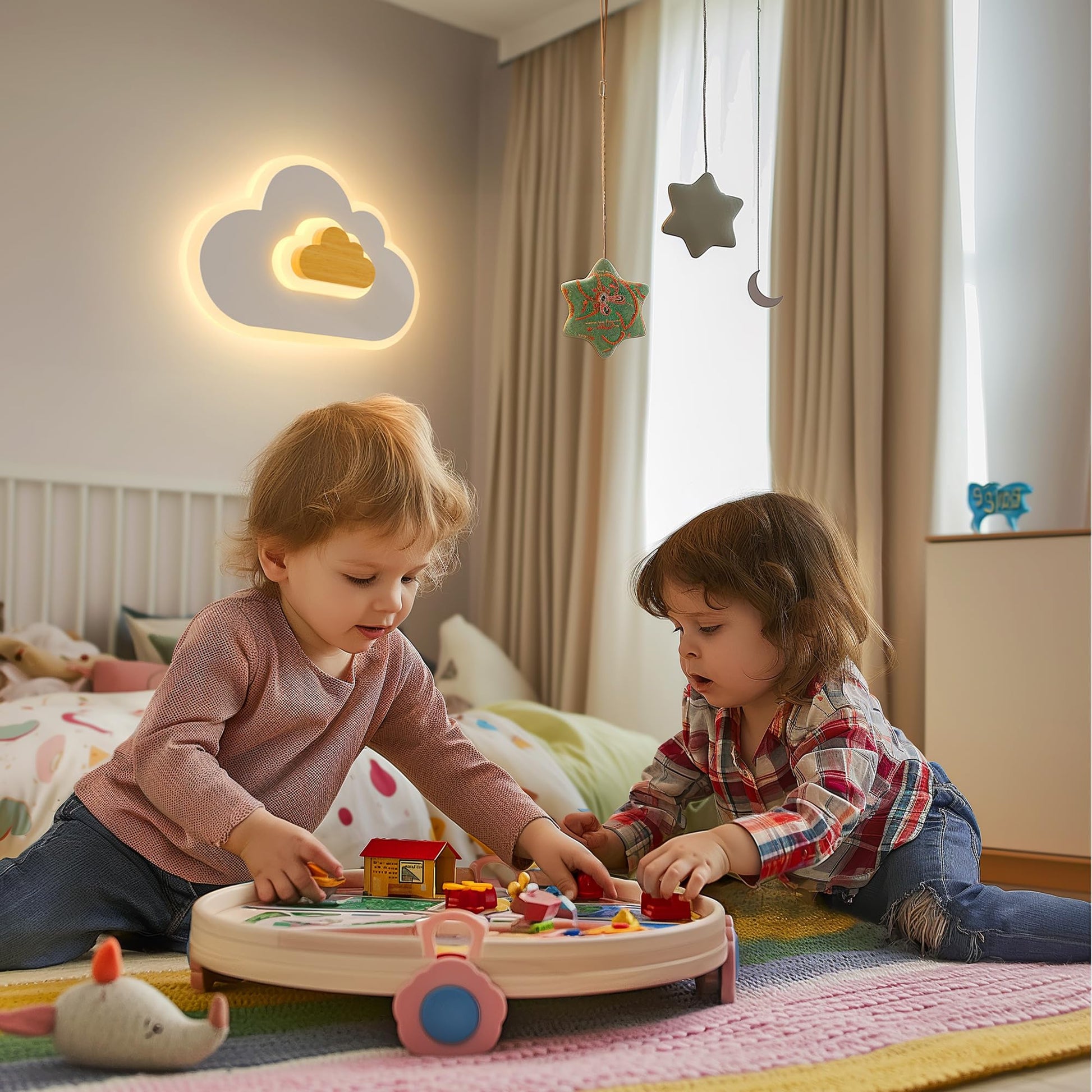 - [Infinite dimming and night light functions]:You can adjust the brightness (10-100%) and color temperature (3000-6500K) through the remote control to meet the needs of different scenes and atmospheres. This cloud-shaped kids room light fixture also has a memory function and a night light function. You can keep the lighting mode when it was last turned off; switch to the night light function to make your child feel at ease and comfortable, and accompany your child into sweet dreams.