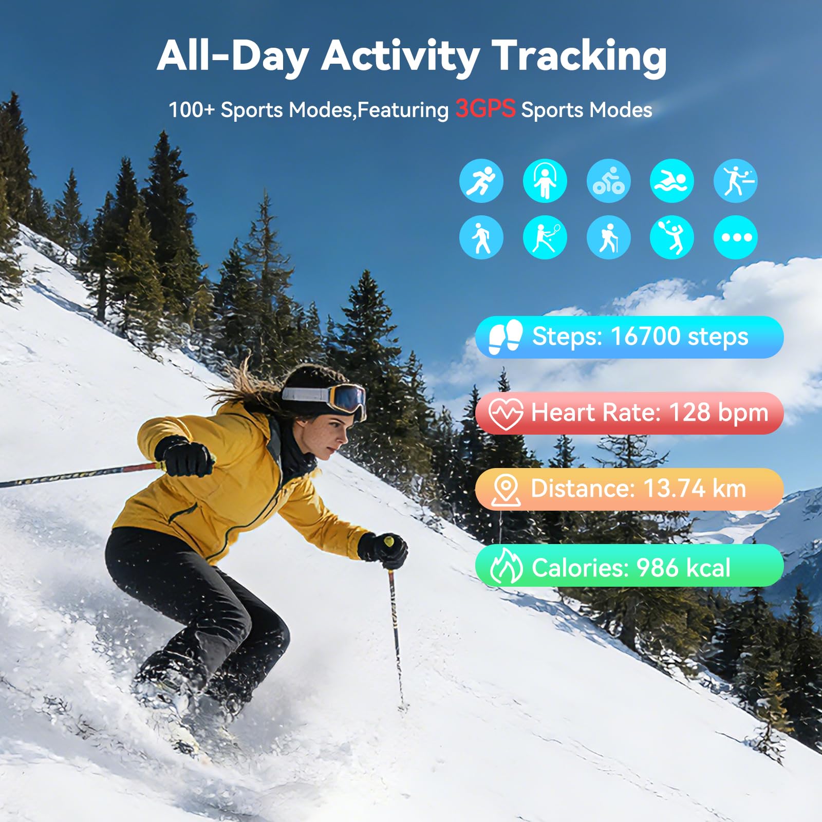 - 【120+ Sports Modes & Precise Activity Tracking】Fitness watches for men Built-in professional algorithms, support over 120 activities including swimming, yoga, and basketball. Dedicated GPS modes for outdoor walking, running, and cycling accurately record routes, calories burned, and more to meet diverse fitness needs