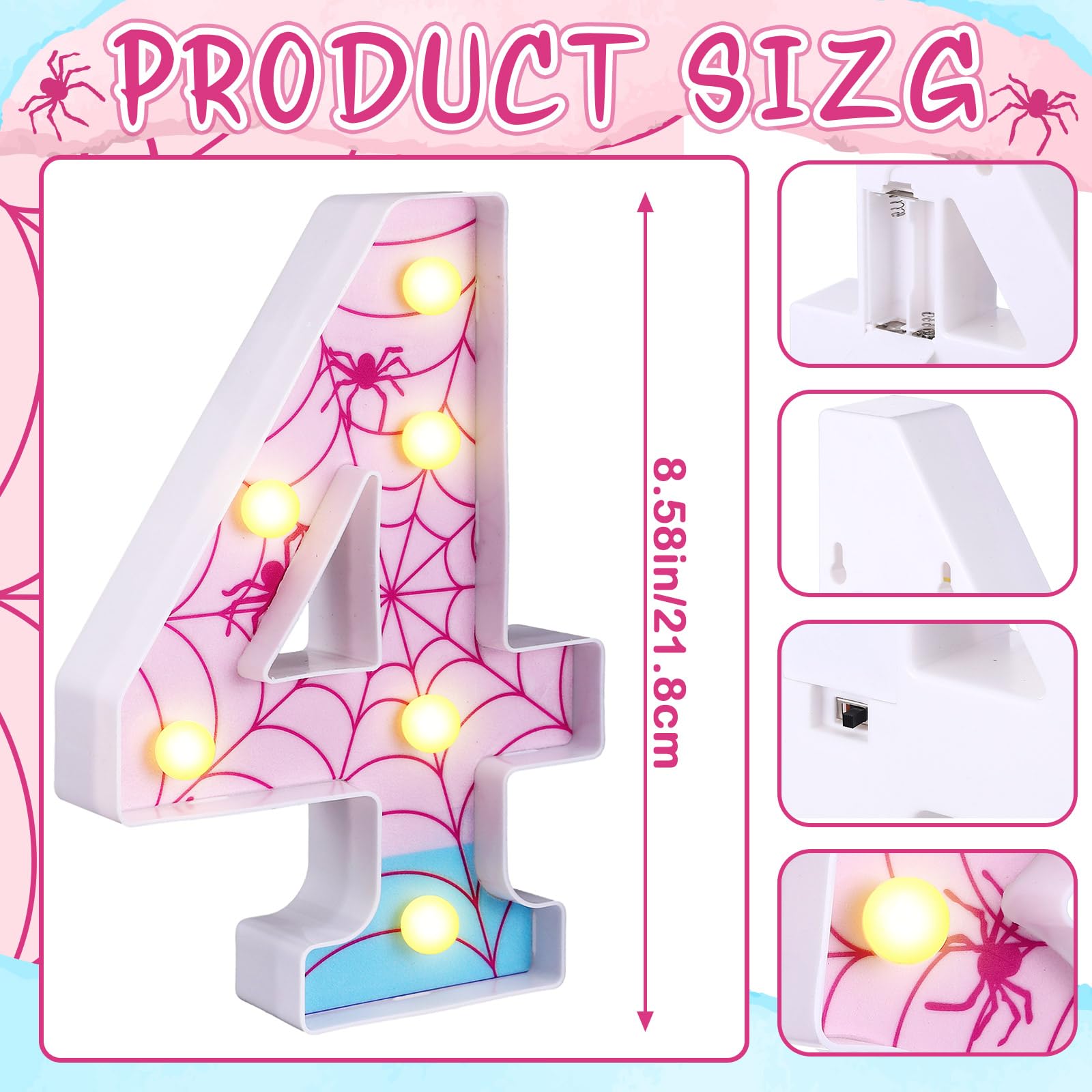 Leinuosen Spider LED Number Lights Birthday Party Decoration Pink Spider Light up Numbers Women Birthday Supplies for Marquee Night Christmas Gift Baby Shower (Number 4)