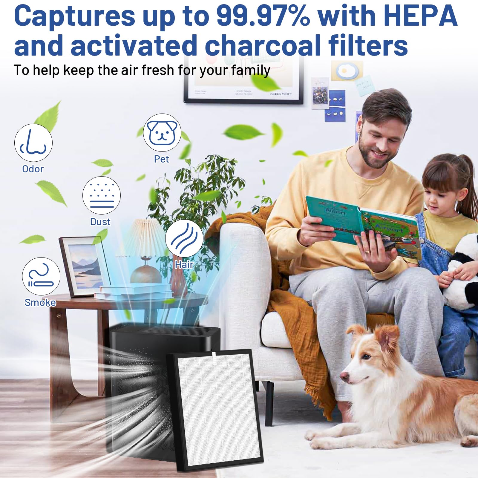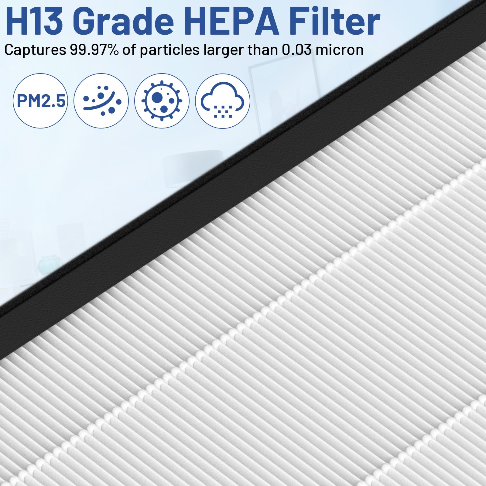 - 3-IN-1 FILTER FILTRATION: Our TZ-K2 replacement filter is high-efficiency 3-in-1 true HEPA filtration systems, including fine preliminary filter, H13 true HEPA filter and activated carbon filter. They can capture up 99.97% of all airborne particles down to 0.3 microns in the air like dust, hairs, lint. Activated Carbon Filter assists in neutralizing smoke and car exhaust. To provide you and your family with fresher air
