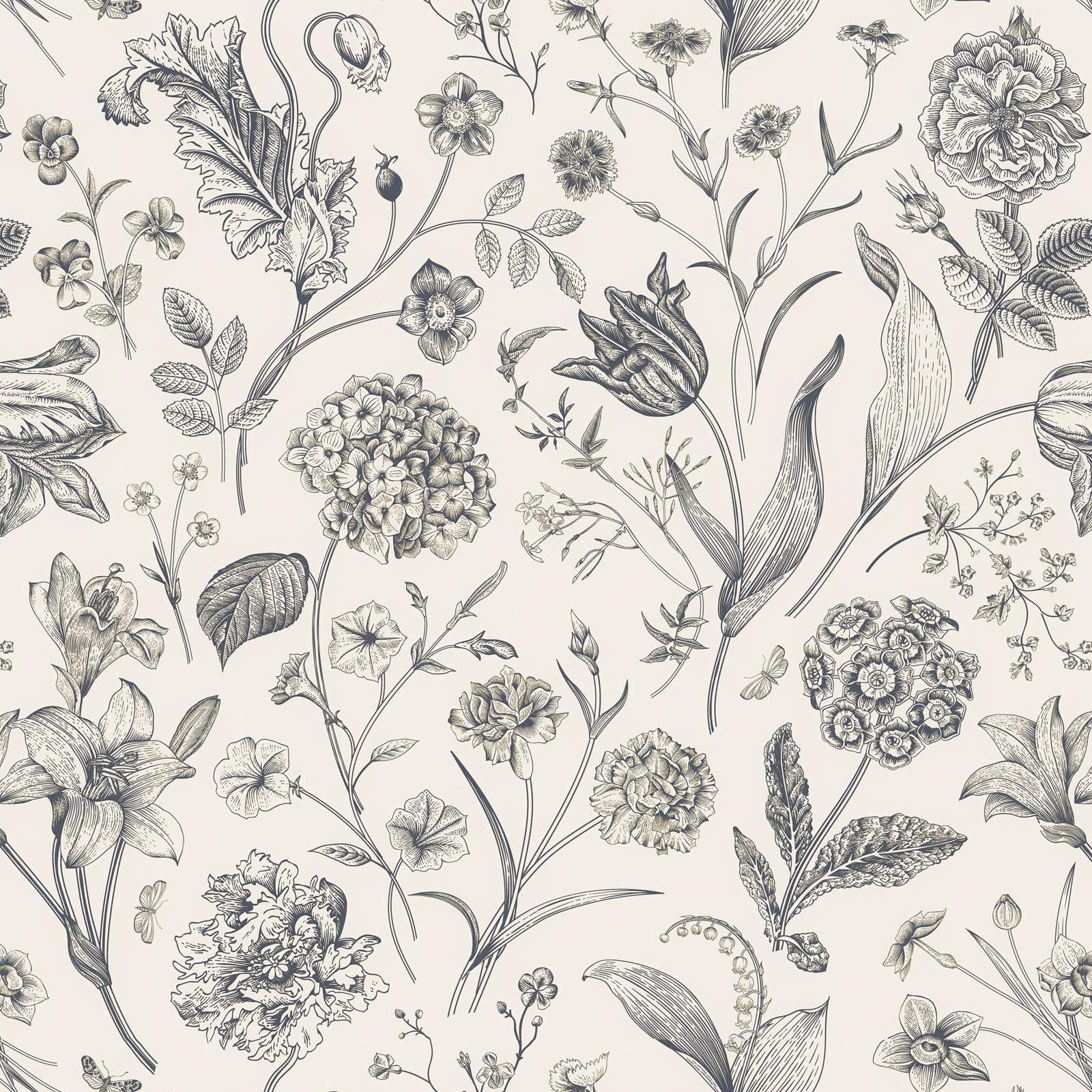 - 【Design】Botanical wallpaper on a white background, decorated with a variety of flowers and plants such as lily of the valley, hydrangea, yume and other flowers and plants, the use of simple brushstrokes, painted into a vivid, interesting pattern to decorate your life.