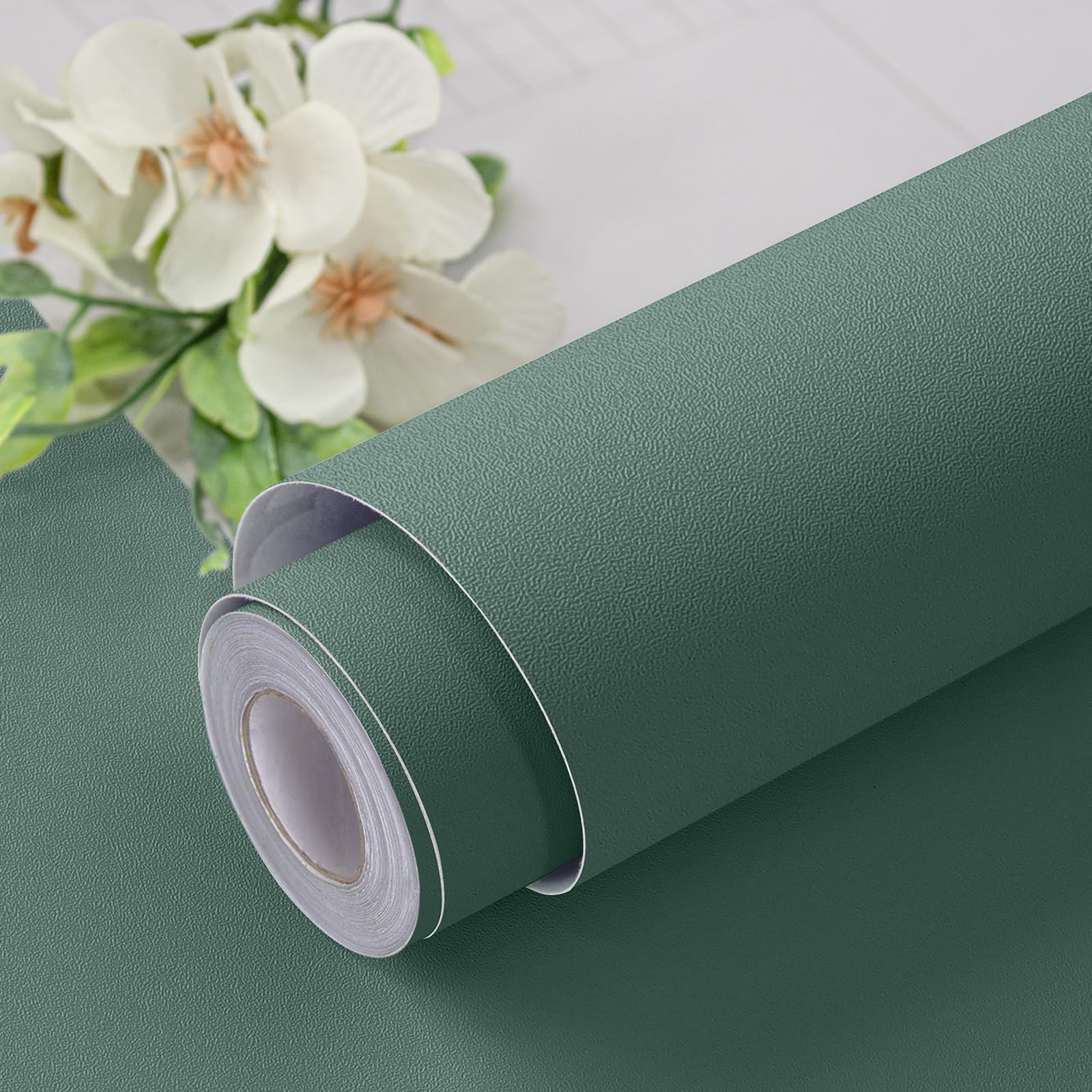 lenify Matte Green Peel and Stick Wallpaper Green Contact Paper 15.7inch x 196.8inch Solid Color Wallpaper Textured Decorative Wall Paper Self Adhesive Removable Cabinets Vinyl