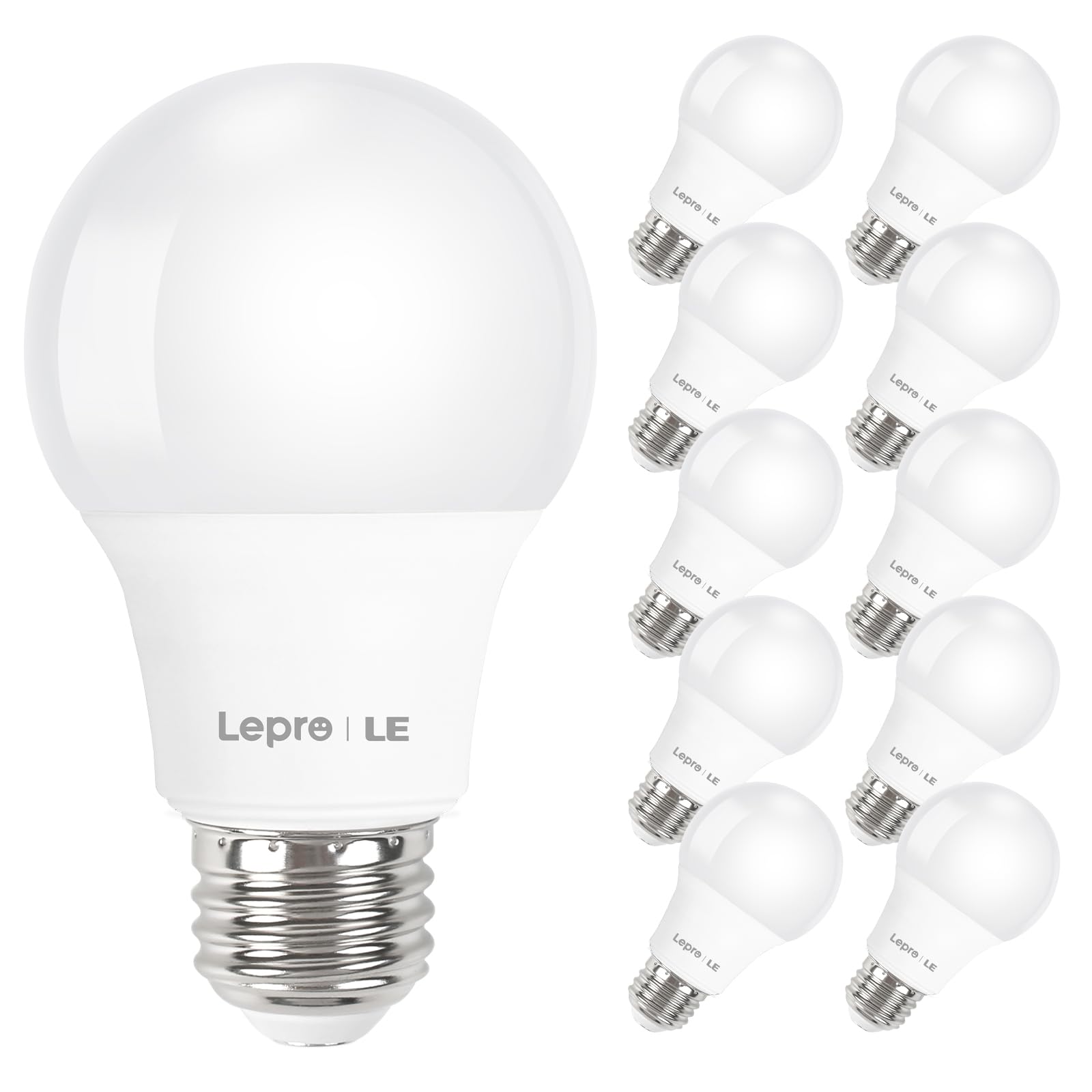 Lepro LED Light Bulbs 60 Watt Equivalent, 9W 800 Lumens Non-Dimmable, Daylight White 5000K, A19 E26 Standard Medium Base, 10000 Hour Lifetime 10 Count (Pack of 1)