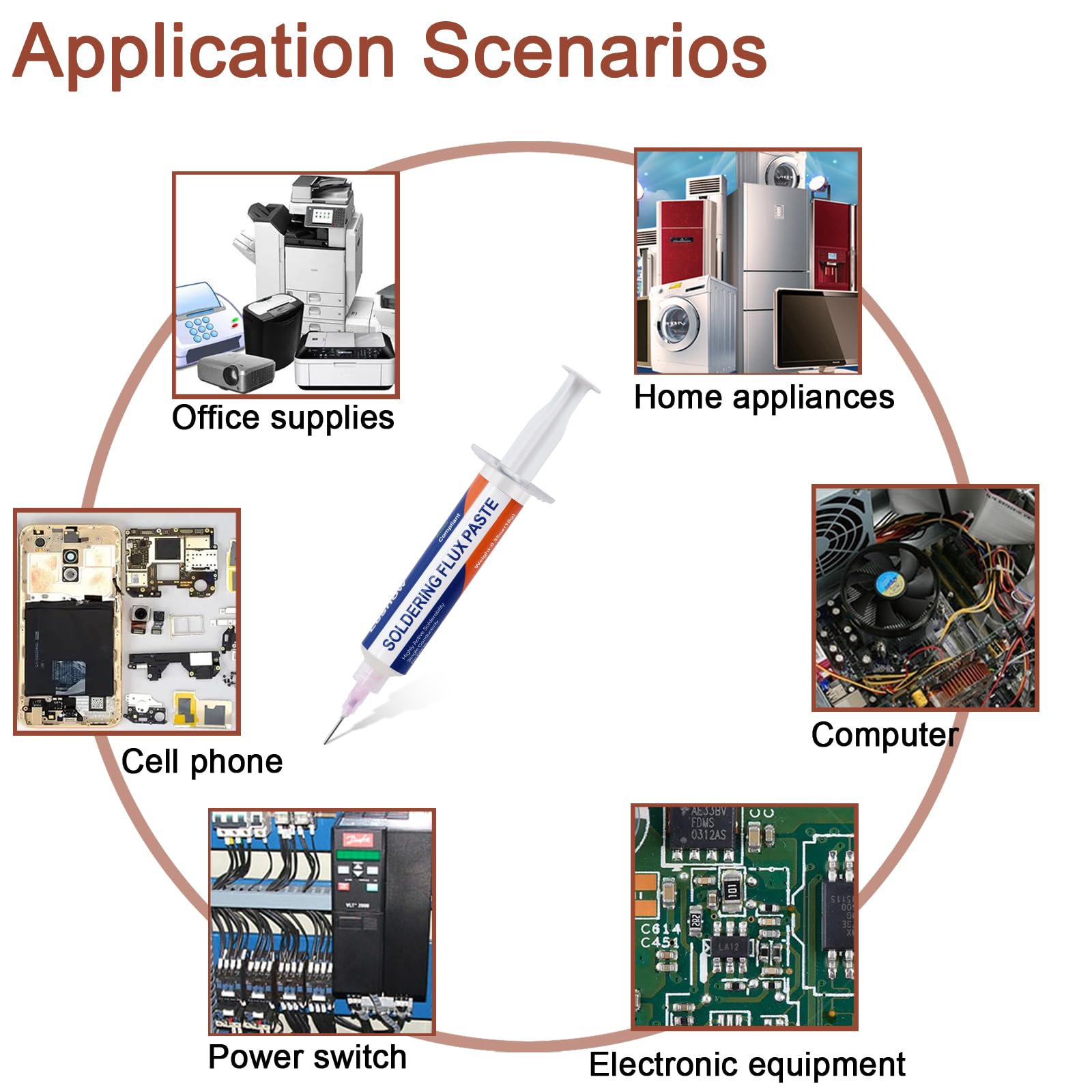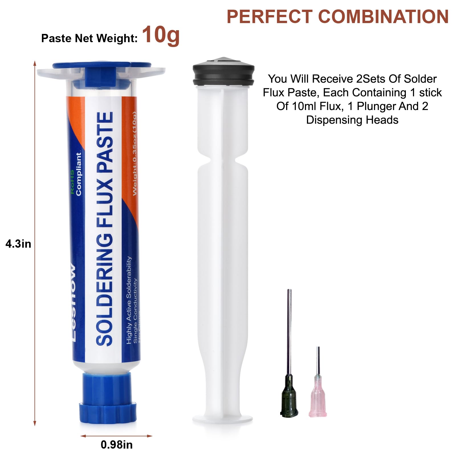 - Perfect Match: The Package Contains 2 Sets Of High-Quality Piston Solder Flux.Each Containing 1stick Of 10ml Flux, 1 Plunger And2 Dispensing Heads, Can Meet Your Needs In Any Situation.