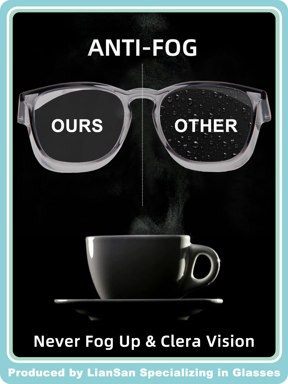 - ANTI-FOG LENS - Another most important feature of our safety goggles is the anti-fog lens. It comes with double-side coating, which keeps vision clear even drinking hot water. Furthermore, the anti-fog feature could last about 2 years