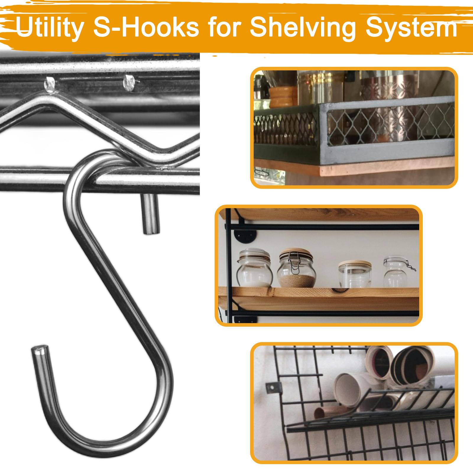 - Dual-Sized Ends for Versatility: Designed with two differently sized openings, these utility hooks easily fit onto various wire shelves, grid panels, hanging rods, or ropes, ensuring a secure fit and reducing the risk of slipping or falling.