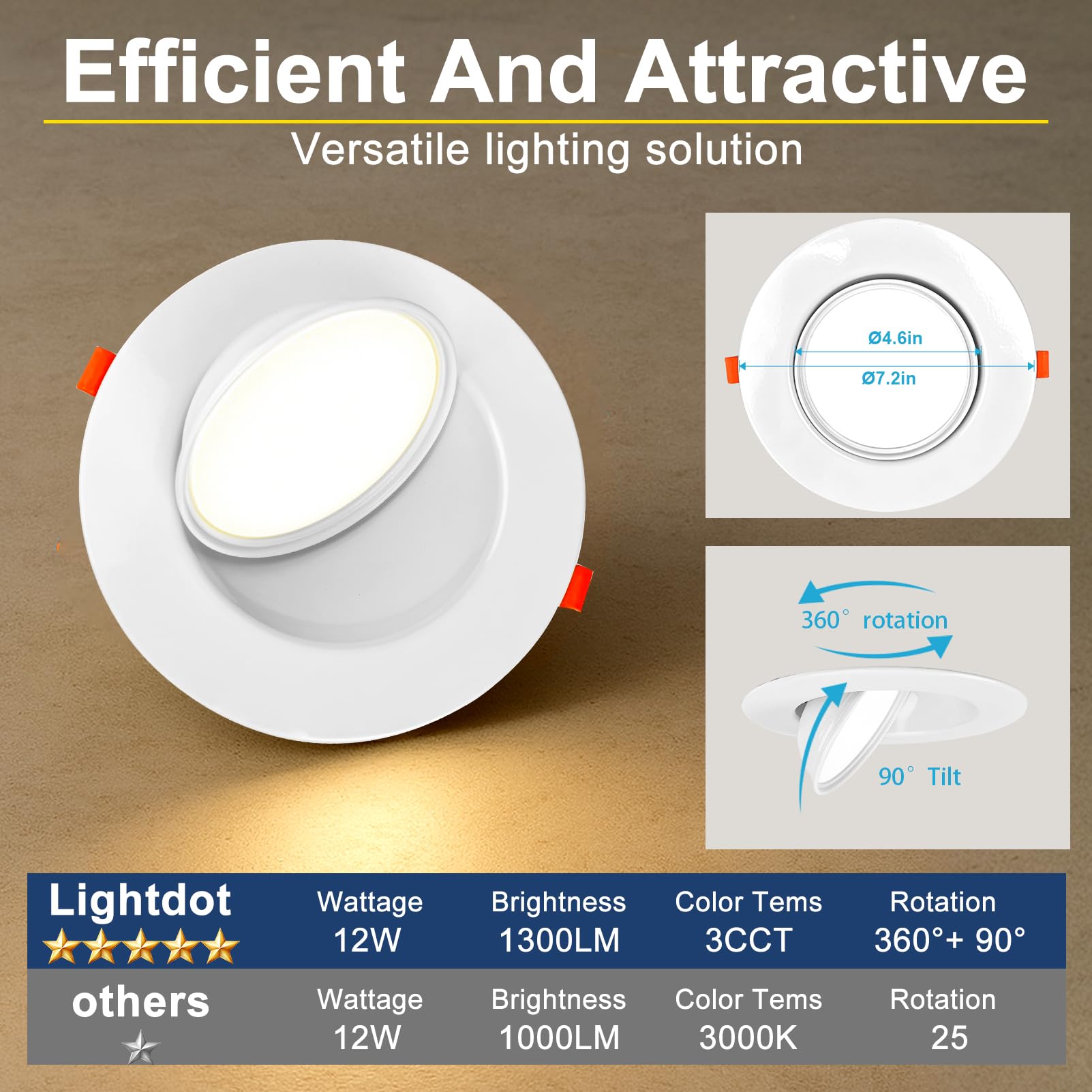 - 360°+90° Full Adjustability💡Gimbal recessed lighting 6 inch Direct light precisely where needed with 360° rotation and 90° tilt, perfect for sloped ceilings, artwork highlighting, or task lighting in kitchens and offices.