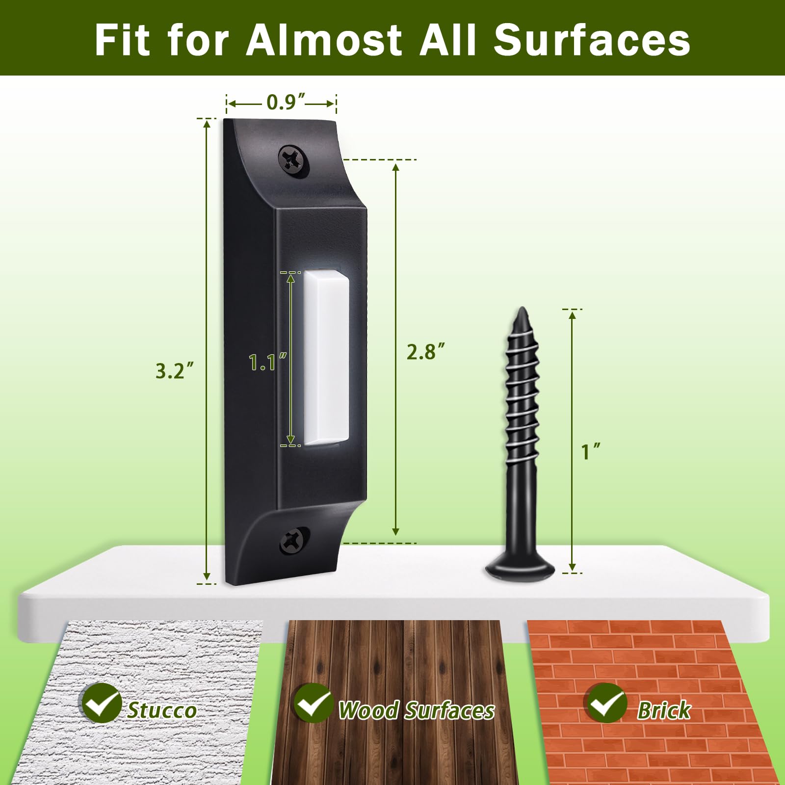 3.The doorbell button comes with mounting screw holes positioned 2 inches apart, making installation quick and easy