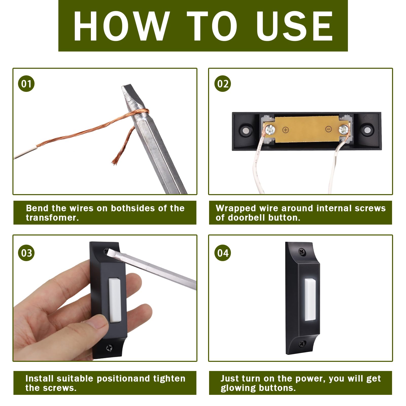 - Simple Installation: The doorbell button comes with mounting screw holes positioned 2 inches apart, making installation quick and easy. It may not require drilling if replacing an old door bell button. Please note, bell wire is not included