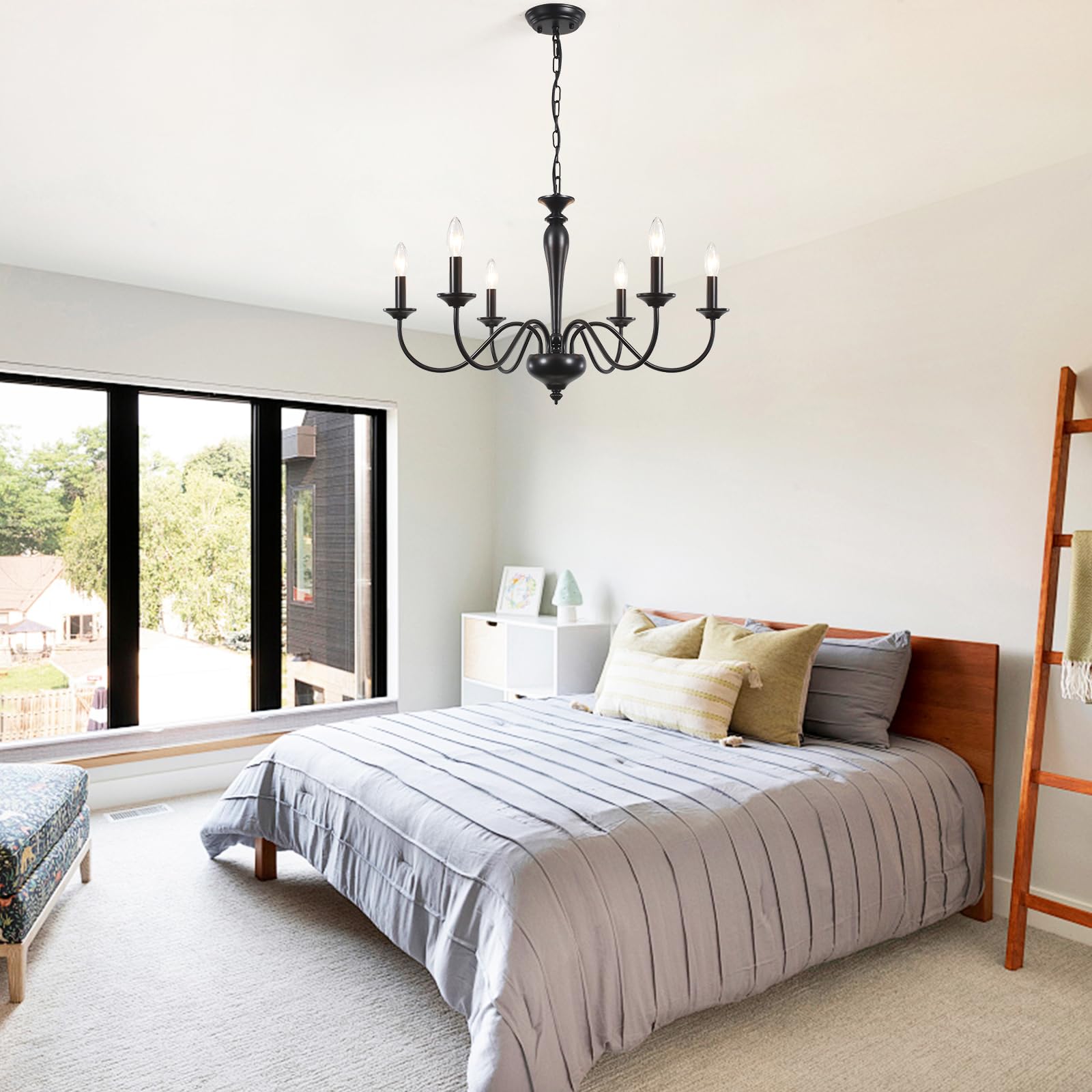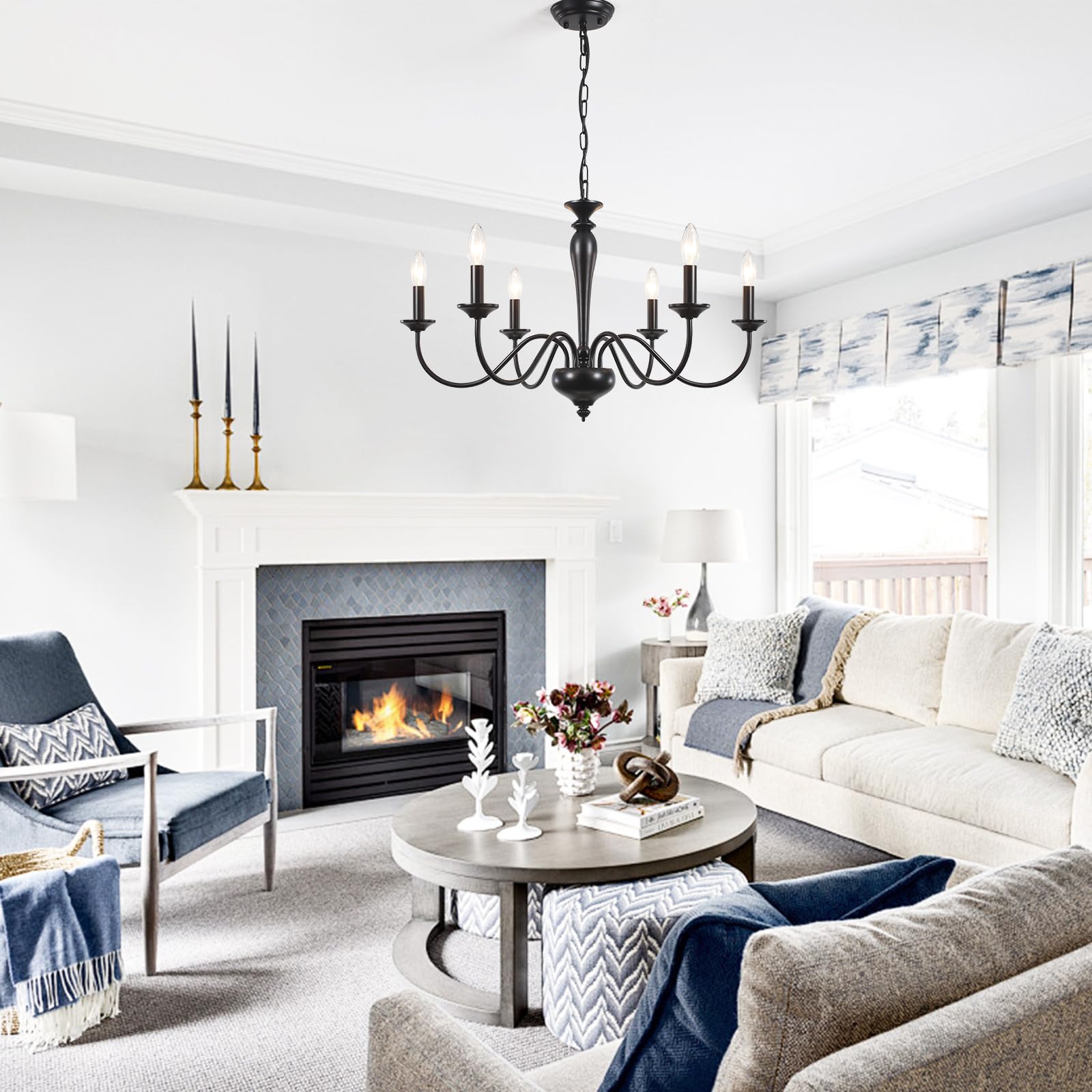 LIHHGFGS Farmhouse Chandelier for Dining Room 6 Lights Black Chandeliers Light Fixture Hanging Candle Iron Chandelier for Bedroom Kitchen Island Foyer Living Room Hallway