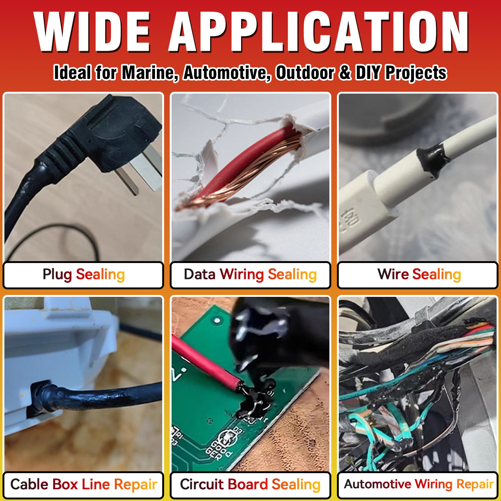 - Wide Application & Reliable Support: Versatile for Many Uses. Perfect for a wide range of applications, including underground wiring, outdoor lighting, battery terminals, marine and automotive wiring, electronic components, and household repairs. For the best results, avoid direct sunlight, high humidity, or strong wind during use. Always disconnect the power and allow the coating to dry fully before restoring electricity