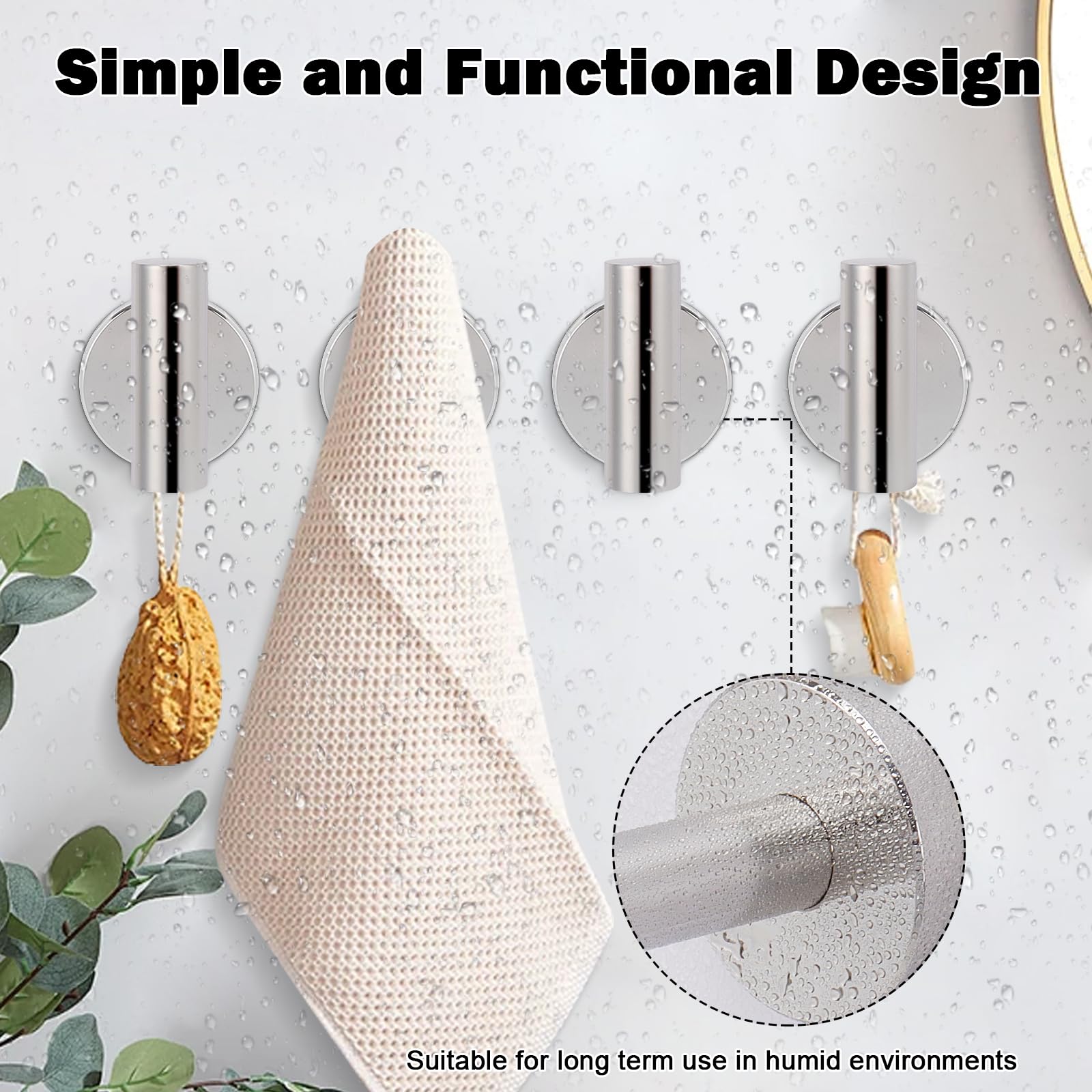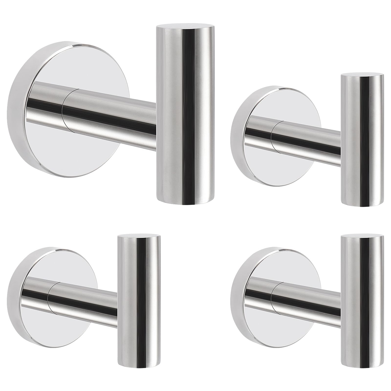 Livabber Bathroom Towel Hooks, 304 Stainless Steel Robe Shower Hooks Wall Mounted, Heavy Duty Towel Hangers for Bathroom Kitchen Bedroom (4 Pack, Chrome)