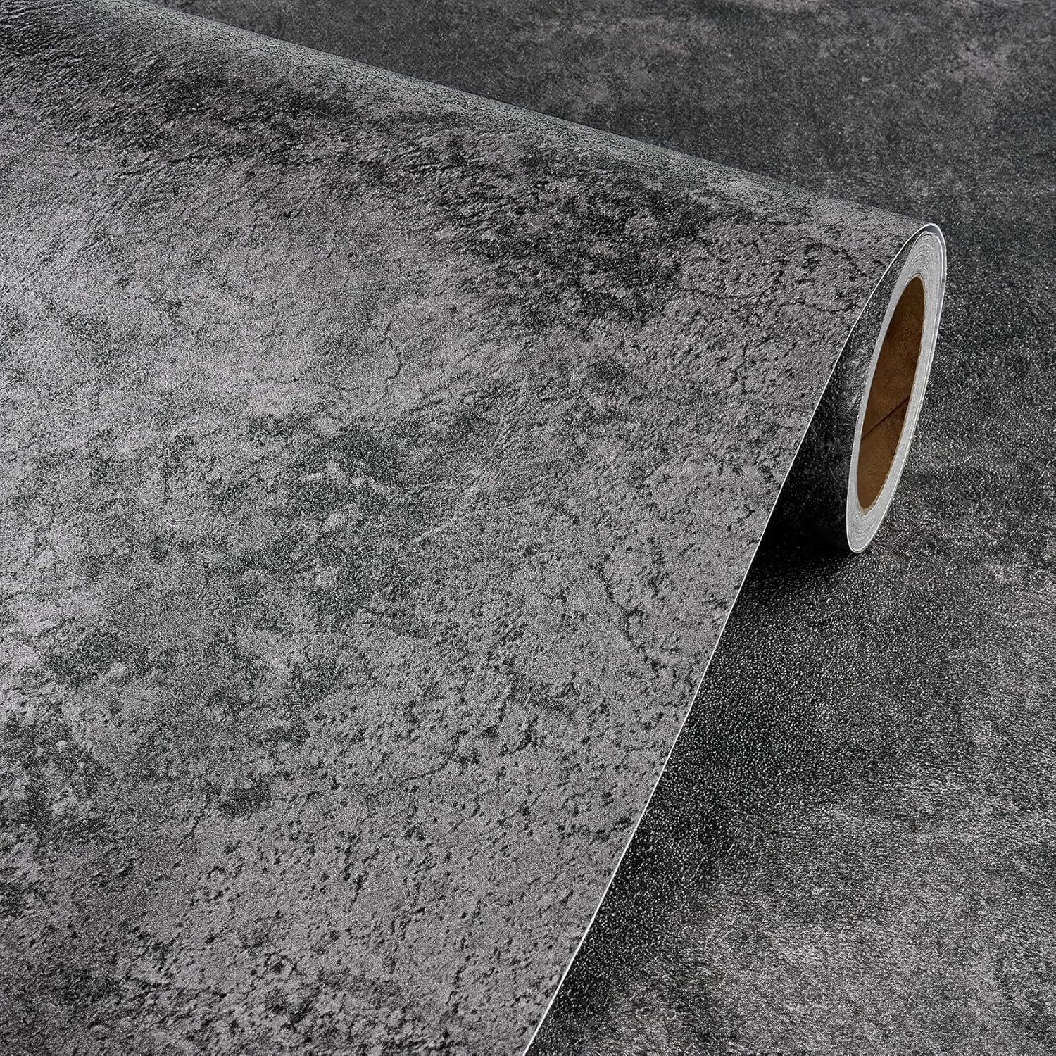 - š DETAILS: Size 15.8 X78.8 Inch , total 8.65 sq.ft(40cmX2m), Self adhesive (no extra glue needed). Made of durable vinyl, Industrial black concrete wallpaper Peel and stick, Waterproof, Removable.