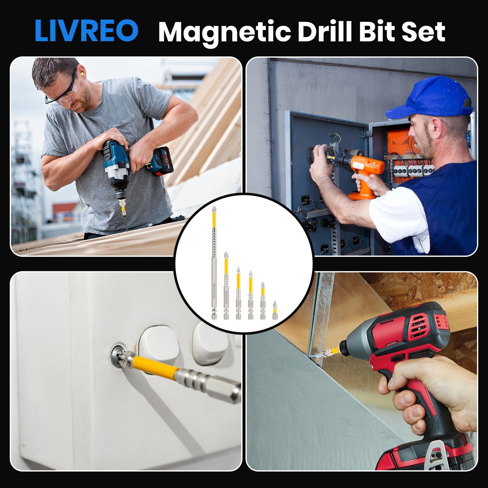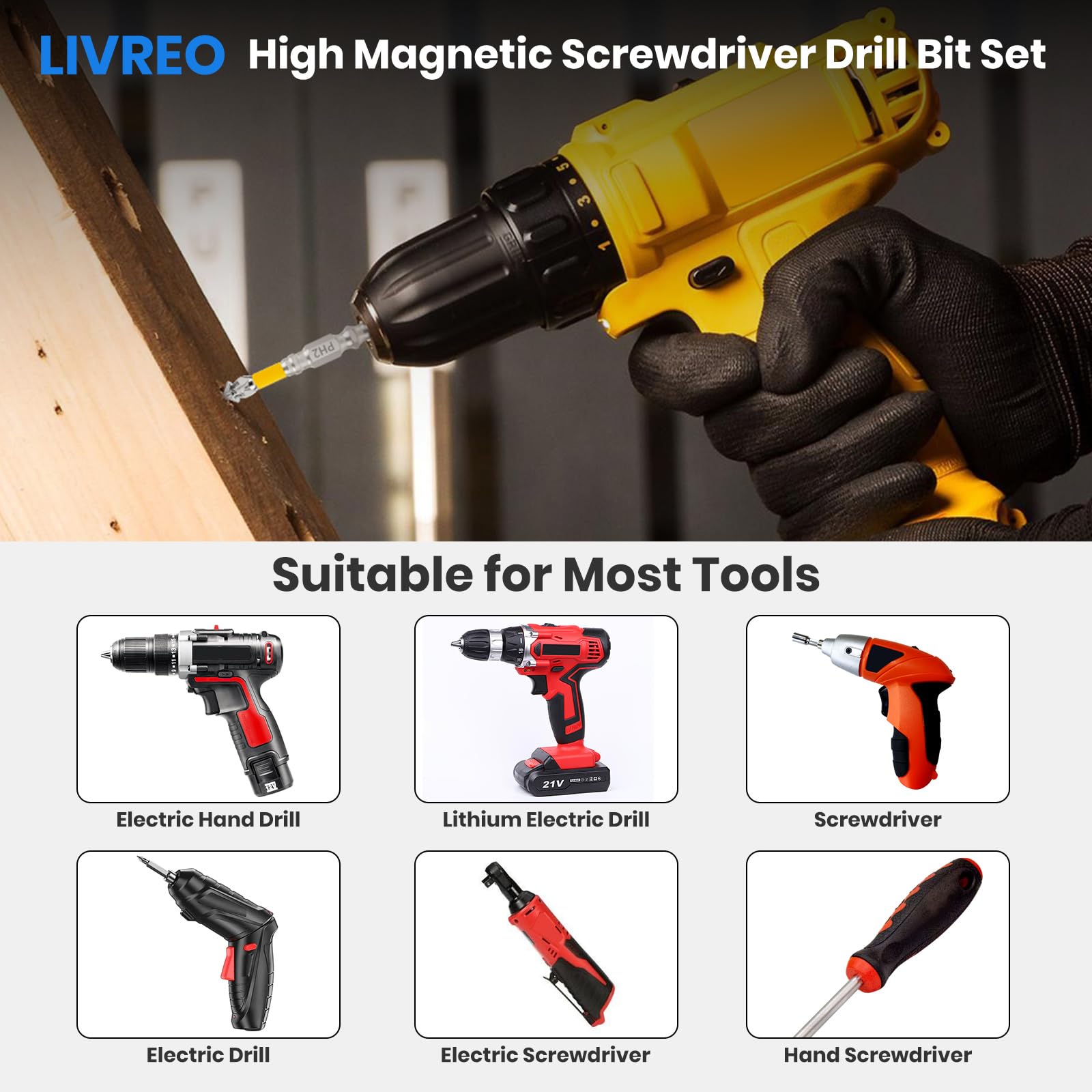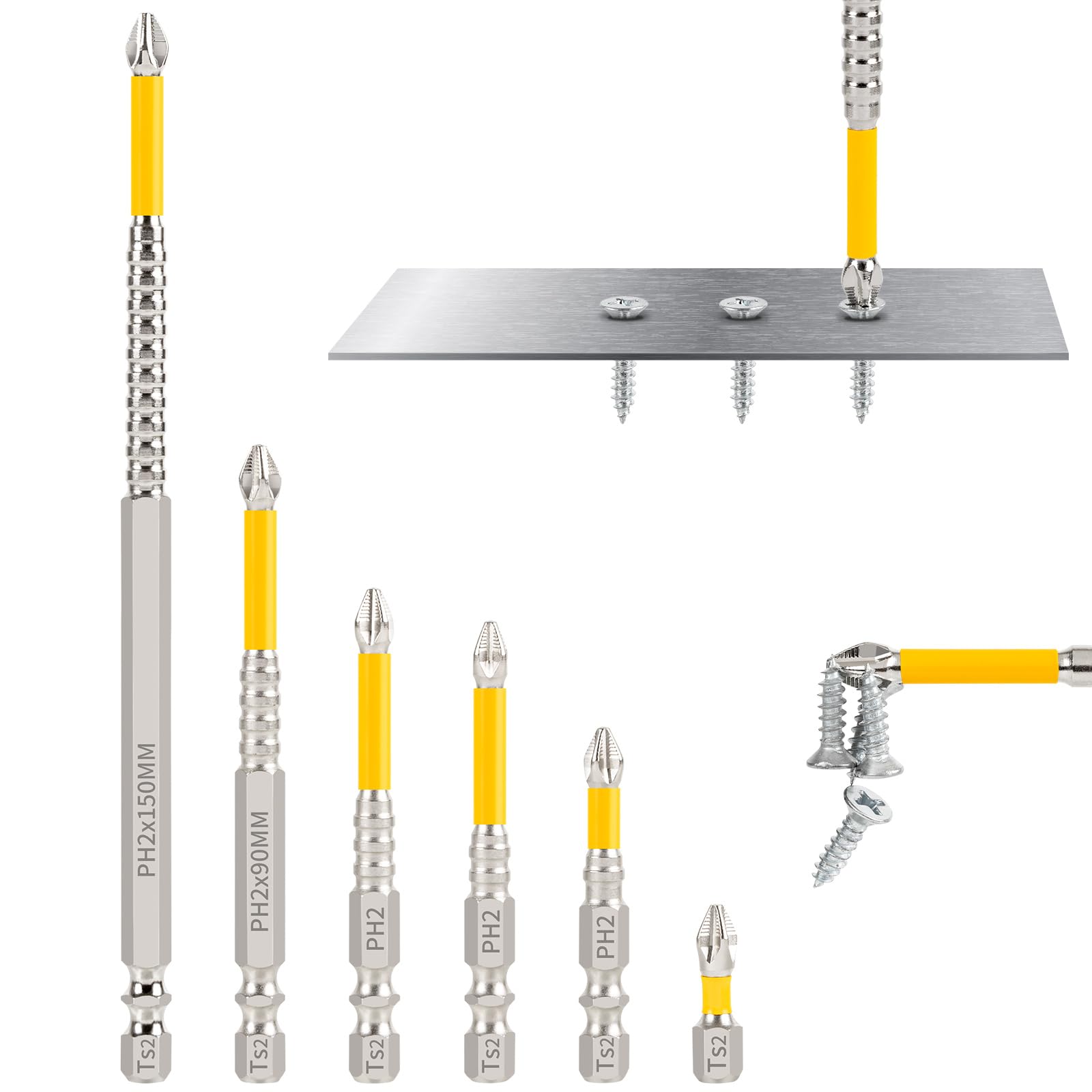 LIVREO High Magnetic Screwdriver Drill Bit Set, K5 Impact Resistant Non Slip Bit, Strong Magnetic Drill Bit Set, Anti-Slip Magnetic Electric Screwdriver Set, 25 50 65 70 90 150mm (6Pcs)