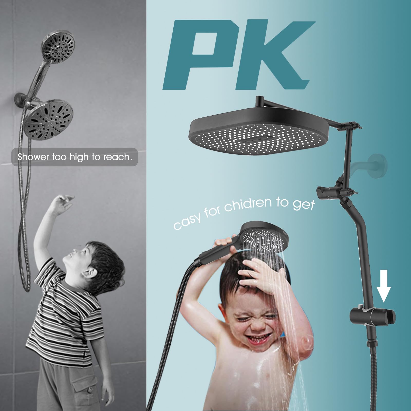 - Package Included: The package includes rainfall shower head, handheld shower head, 3-way diverter with shower extension arm, shower slide bar, shower bracket, shower hose, hardware pack and detailed installation guide