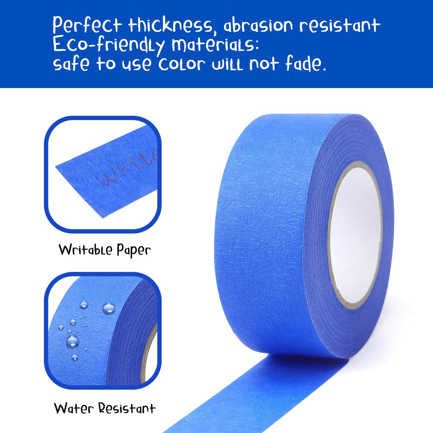 - Quality Masking Tape: Made of high quality paper, It can be torn by hand, sticky enough to adhere to any clean surface and easy to re-position. The tape can be used on paper, objects and walls.
