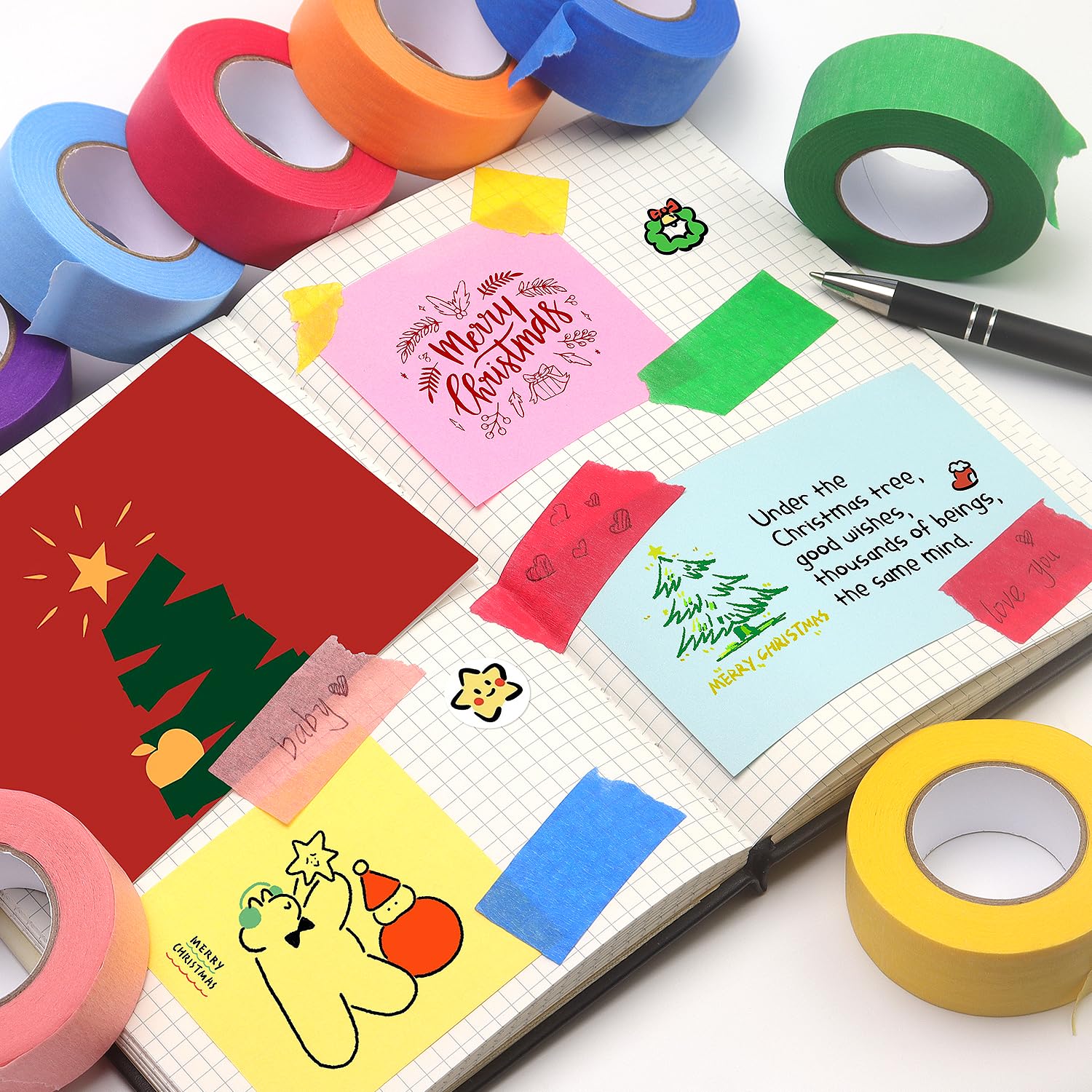 - Eco-Friendly Material: The colorful paper tape is made from biodegradable crepe paper, which is non-toxic, acid-free and odorless, making it safe to use. You can write anything on the colored masking tape with various pens and it shows up clear.