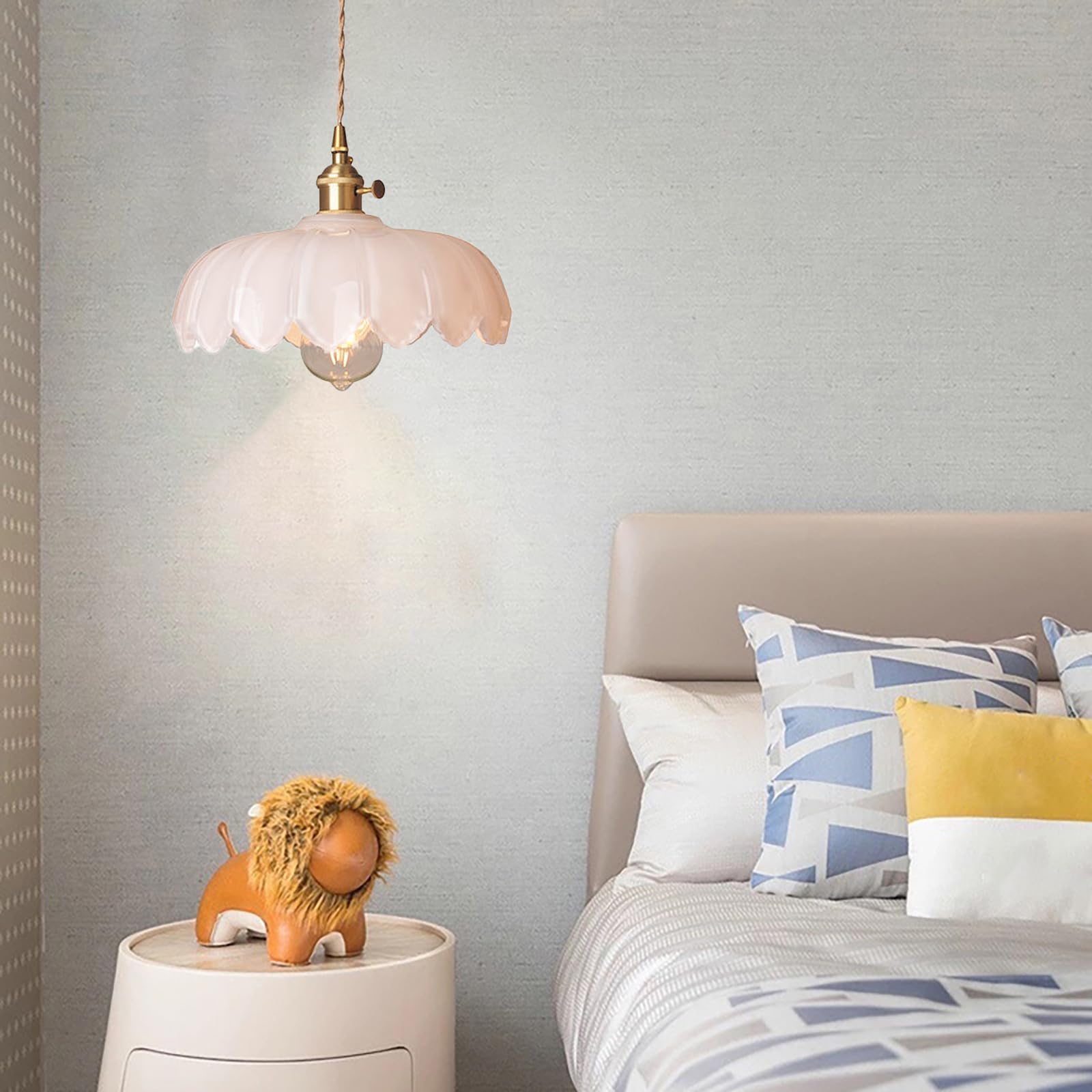 LOTREE Milk White Glass Pendant Light Fixtures Medium 9.8 Inches Lampshade Gold Brass Finish and Switch Vintage Pendant Ceiling Lamp Copper Pendant Lighting (Milk White)