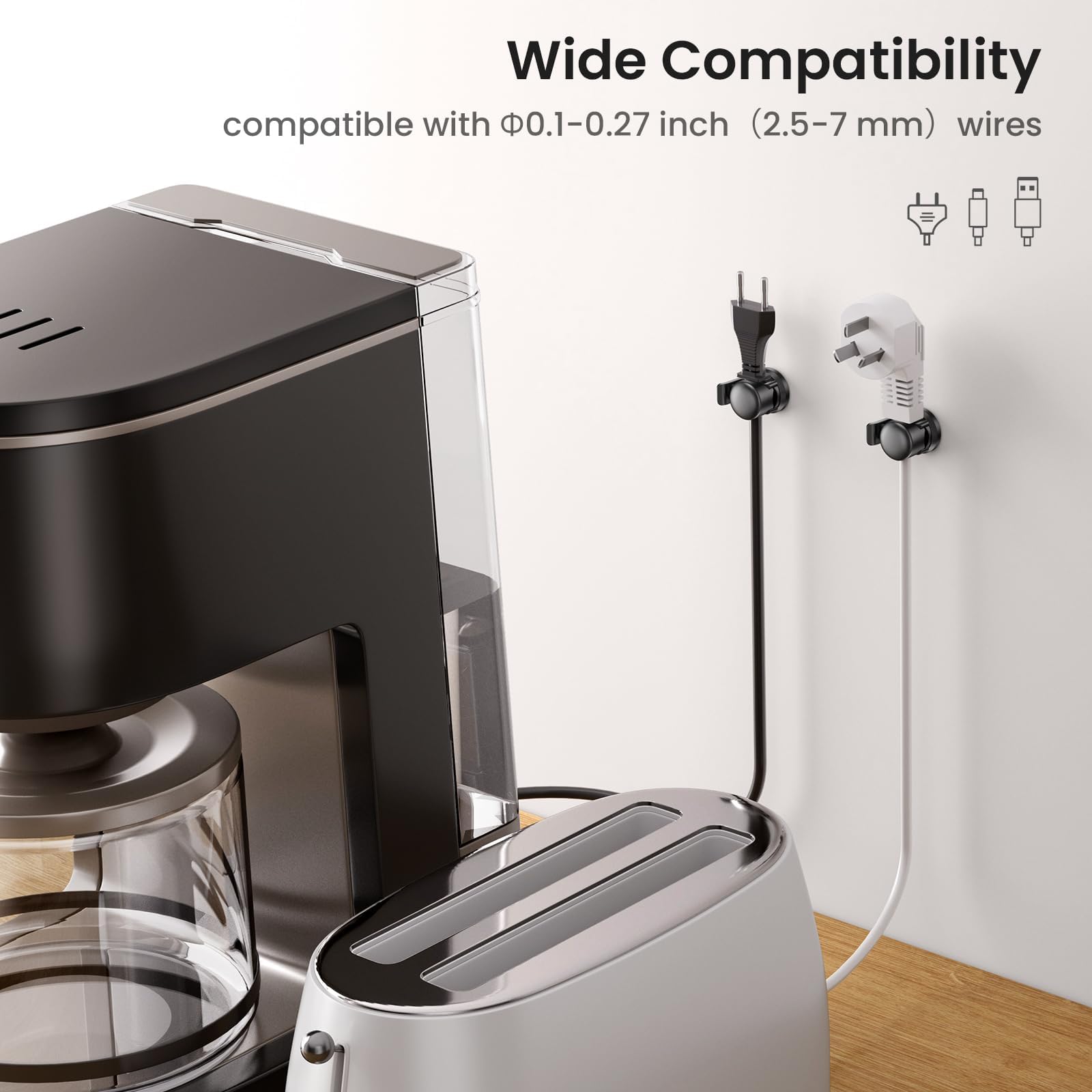- Perfect Cable Slot Diameter: Diameter of cable holder is 2.5-7mm (0.1-0.27 inch), Includes Phone charger cables, USB cables, network cables, kitchen appliance power cord and so on.The cable clip feature a flexible design, which allows it to adapt to various wire thicknesses and can be freely stretched during use.