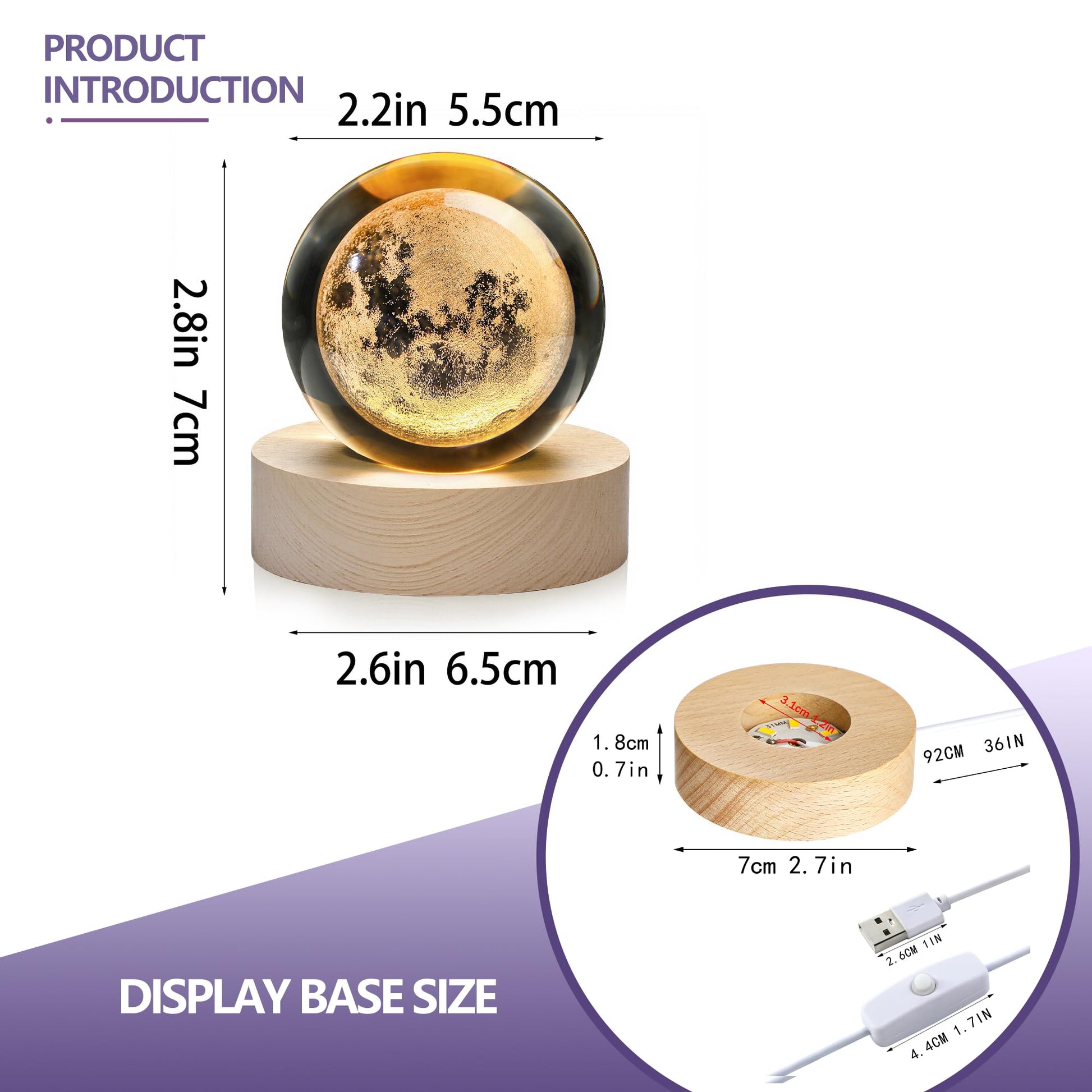 - The 3D laser engraving moon crystal ball presents a clear and beautiful appearance of the moon