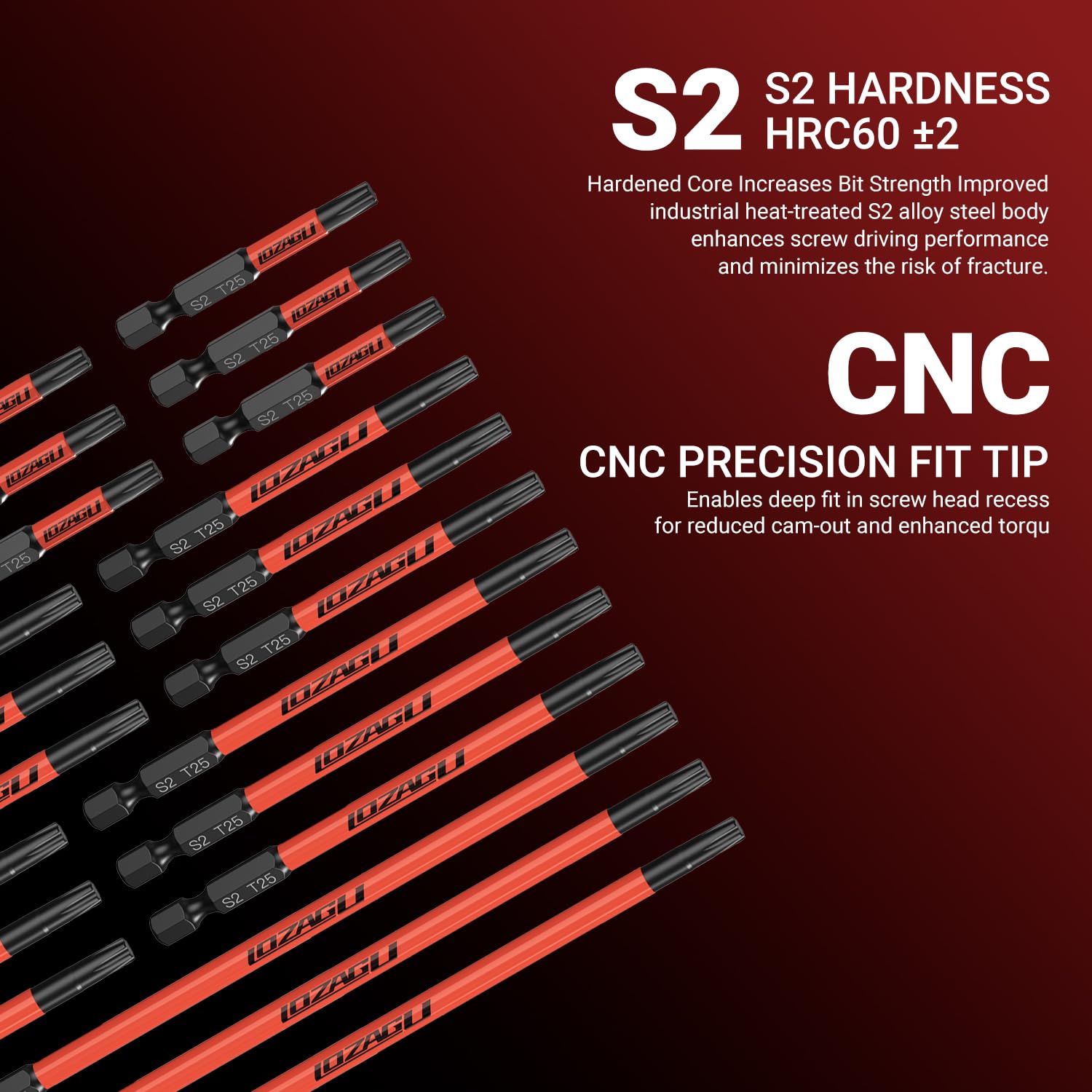 LOZAGU 10-Piece T25 Torx Bits, 2'' to 6'' (50-152mm), Magnetic T25 Torx Bits for Impact Driver, 1/4 Inch Hex Shank | S2 Steel