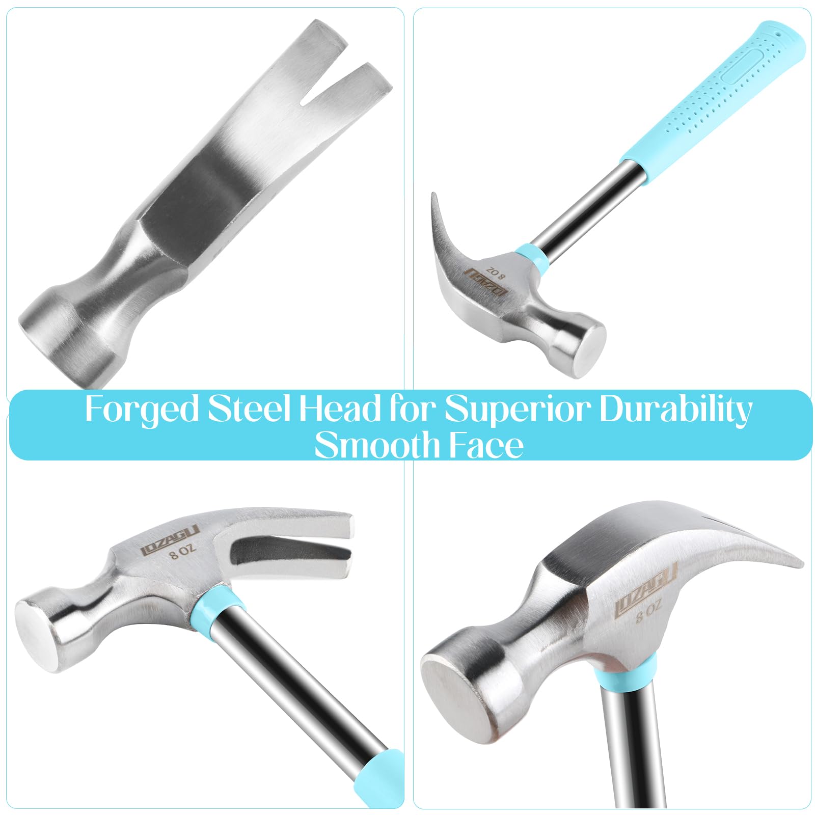 LOZAGU 8oz Hammer, 2-Piece Small Claw Hammer & Rubber Mallet Hammer Mini Hammer Set