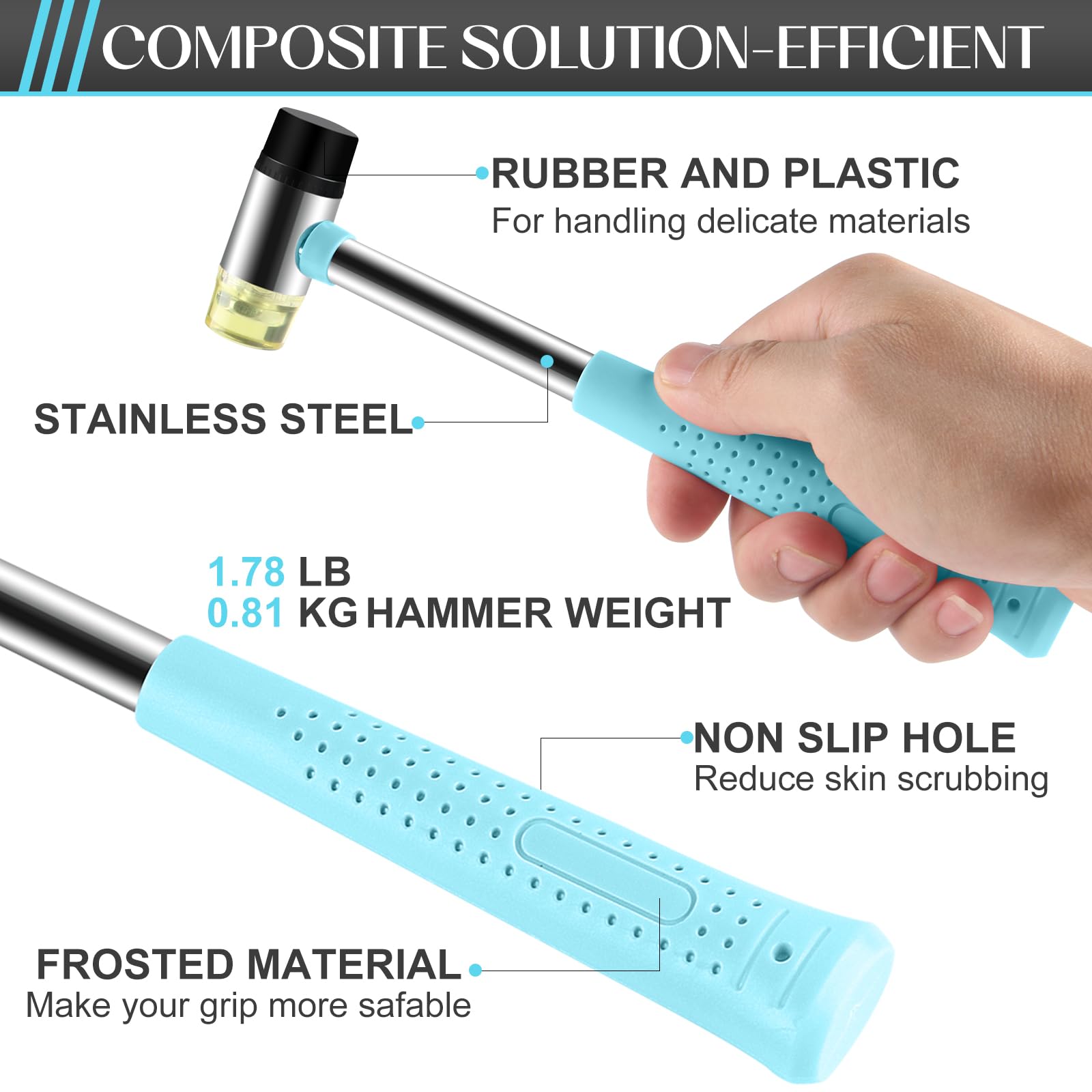 - 25mm Small Rubber Mallet Hammer: This fret hammer gunsmith hammer plastic head is made of stainless steel handle and one high quality rubber head and a plastic hammer head on other side with excellent wear resistance and elasticity. The soft rubber mallet will not damage the surfaces when vinyl mallet is hit, provide effective protecting on tile surface.