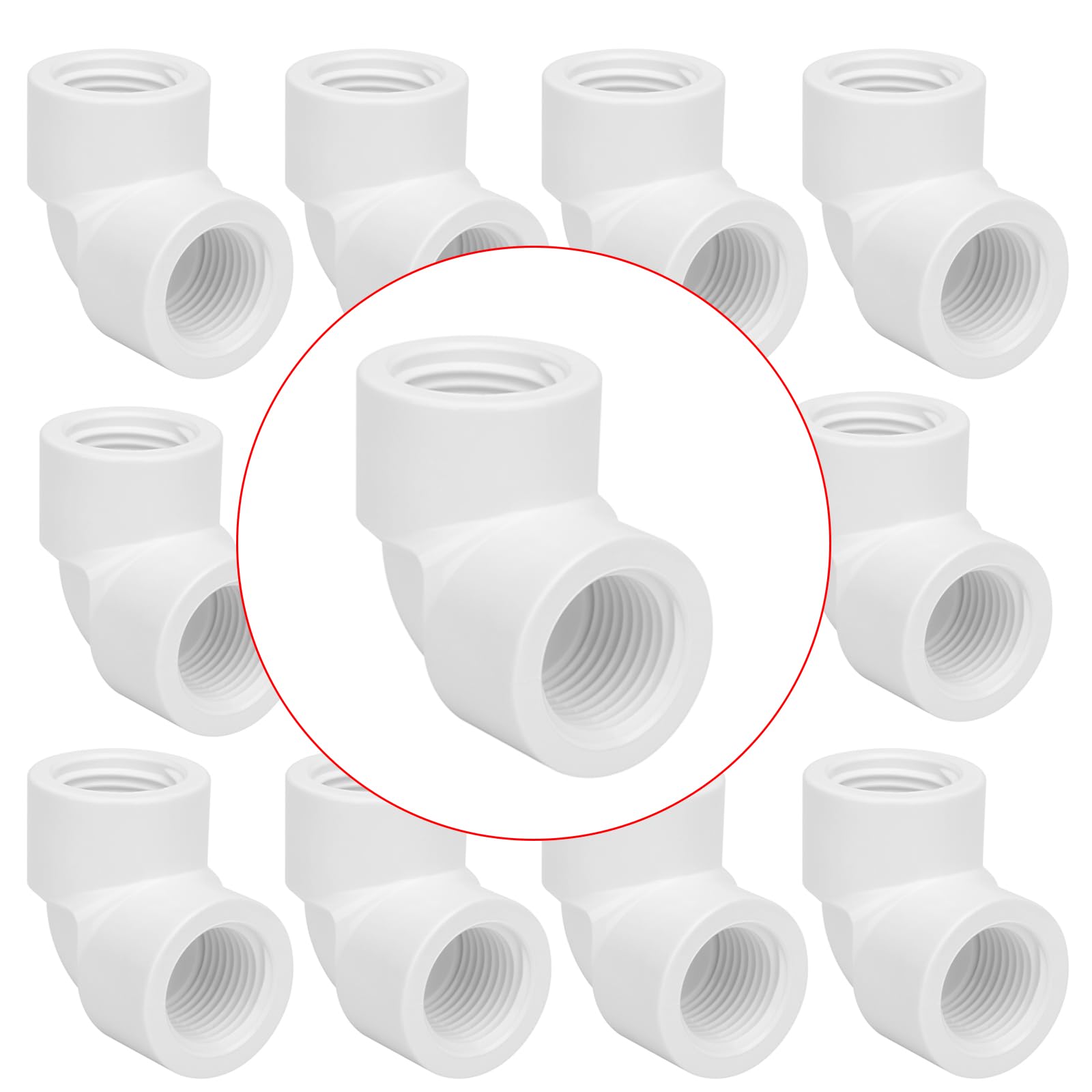 Lswteiz 10Pack 1/2" Double 90 Degree PVC Elbow Pipe Fitting Connector SCH40 1/2Inch Female to Female Threaded 90 Degree Elbow PVC Corner Adapter Pipe Fitting for Sprinkler, Irrigation