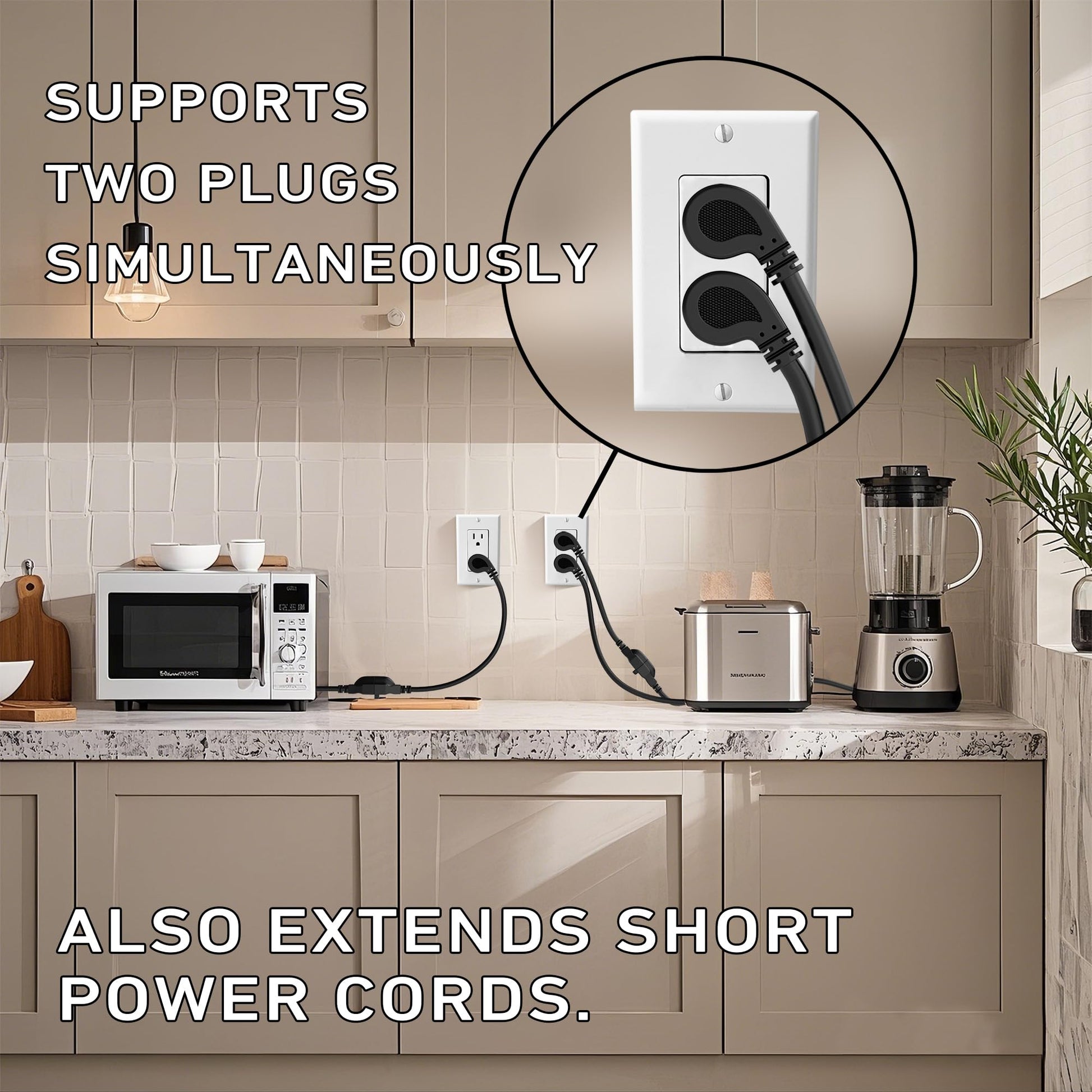 - EASE OF USE: The curved design of the head of the flat extension cord allows you to use it on the sofa and behind the cabinet. The reinforcement design at the connection between the head and the line makes the head of the indoor extension line bend more than 20,000 times. The flexible PVC wire body makes the extension cord very soft and can be easily stored