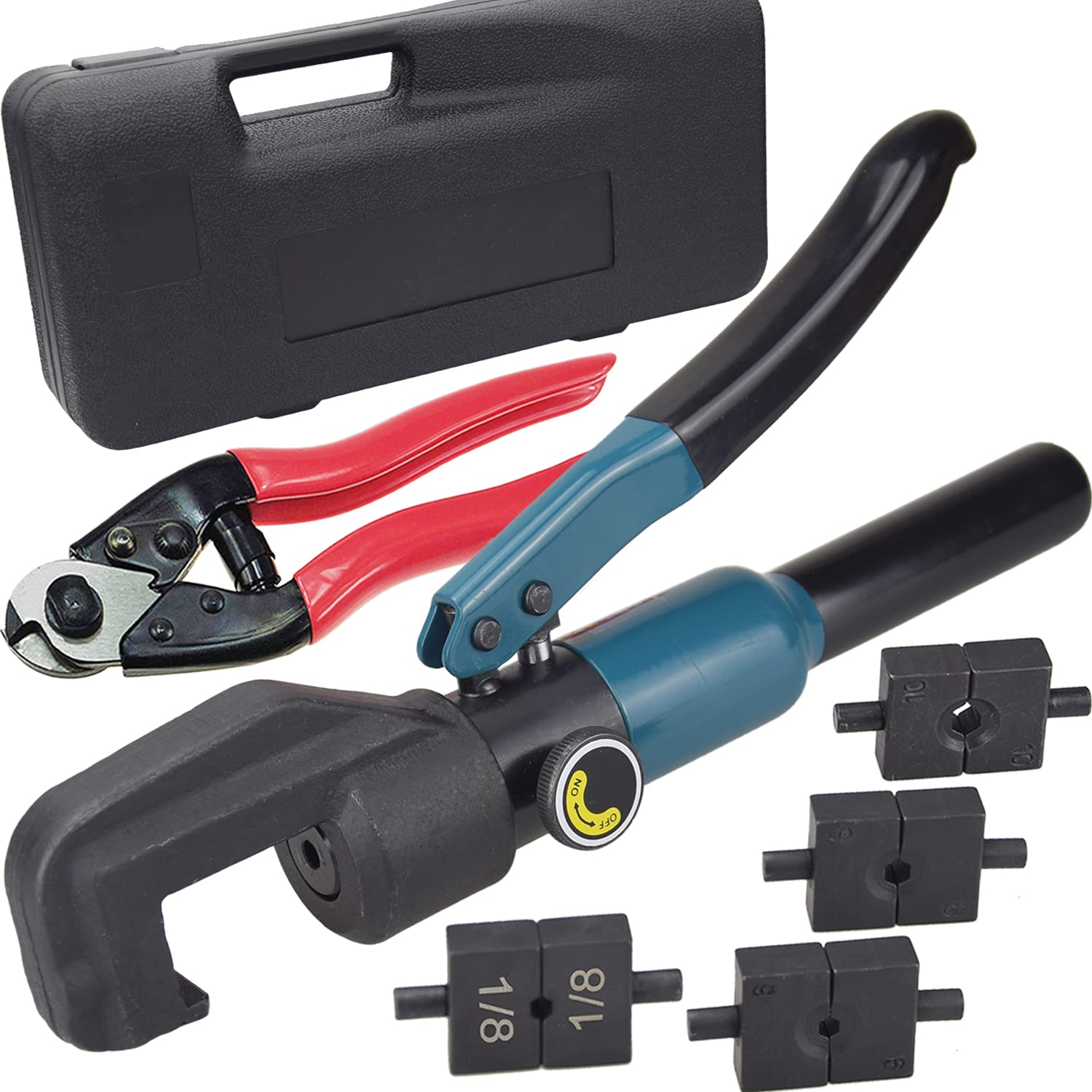 Lulultn Custom Hydraulic Crimper Tool for 1/8 Stainless Steel Cable Railing Kit Hardware System Fittings, with Cable Cutter