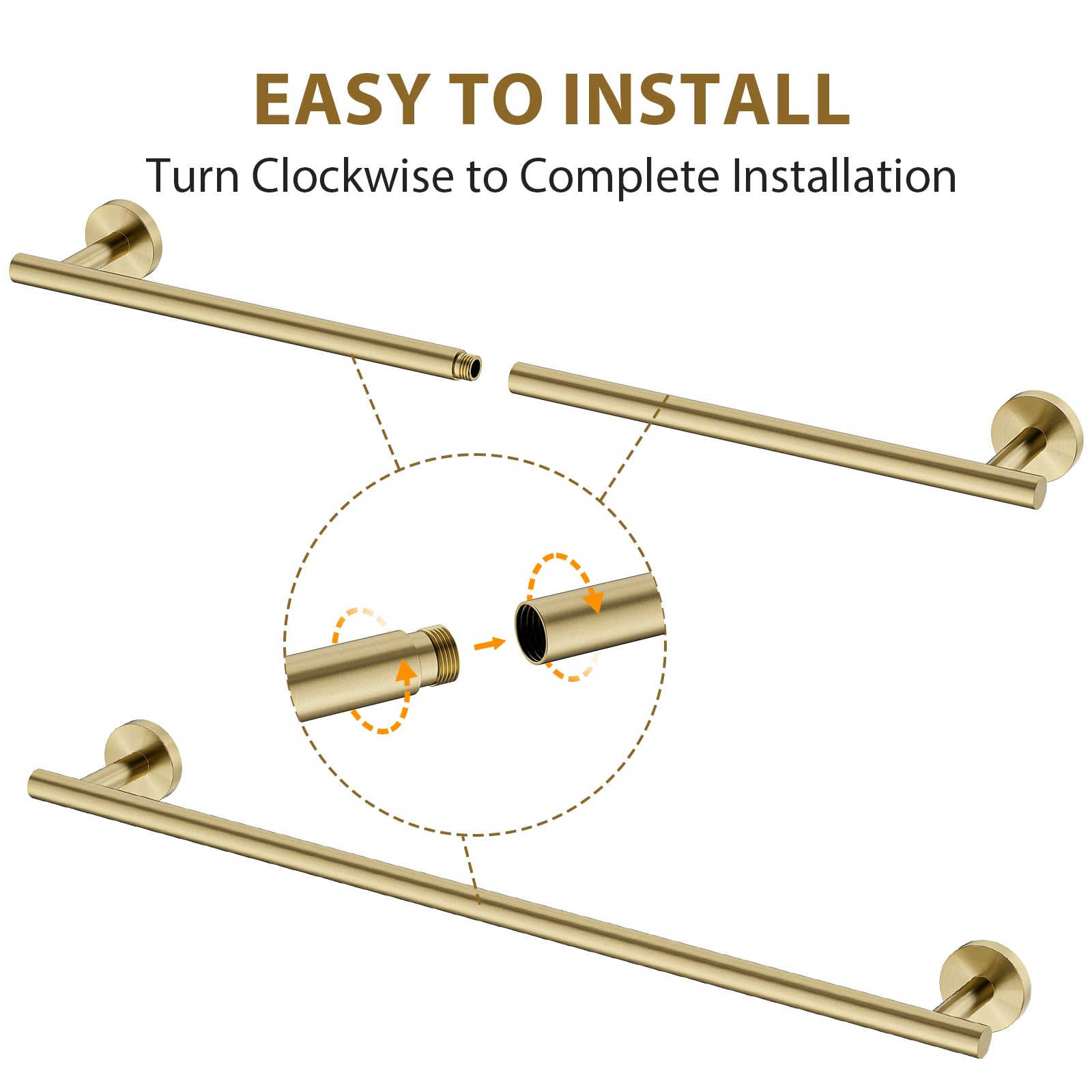 - 【Warm Notice】This towel bar is made up of two rotatable sections, with an overall length of 26 inches and a hanging length of 24 inches. Please measure your area before purchase to confirm the right size. Please measure the installation hole spacing before purchasing to ensure size matching.