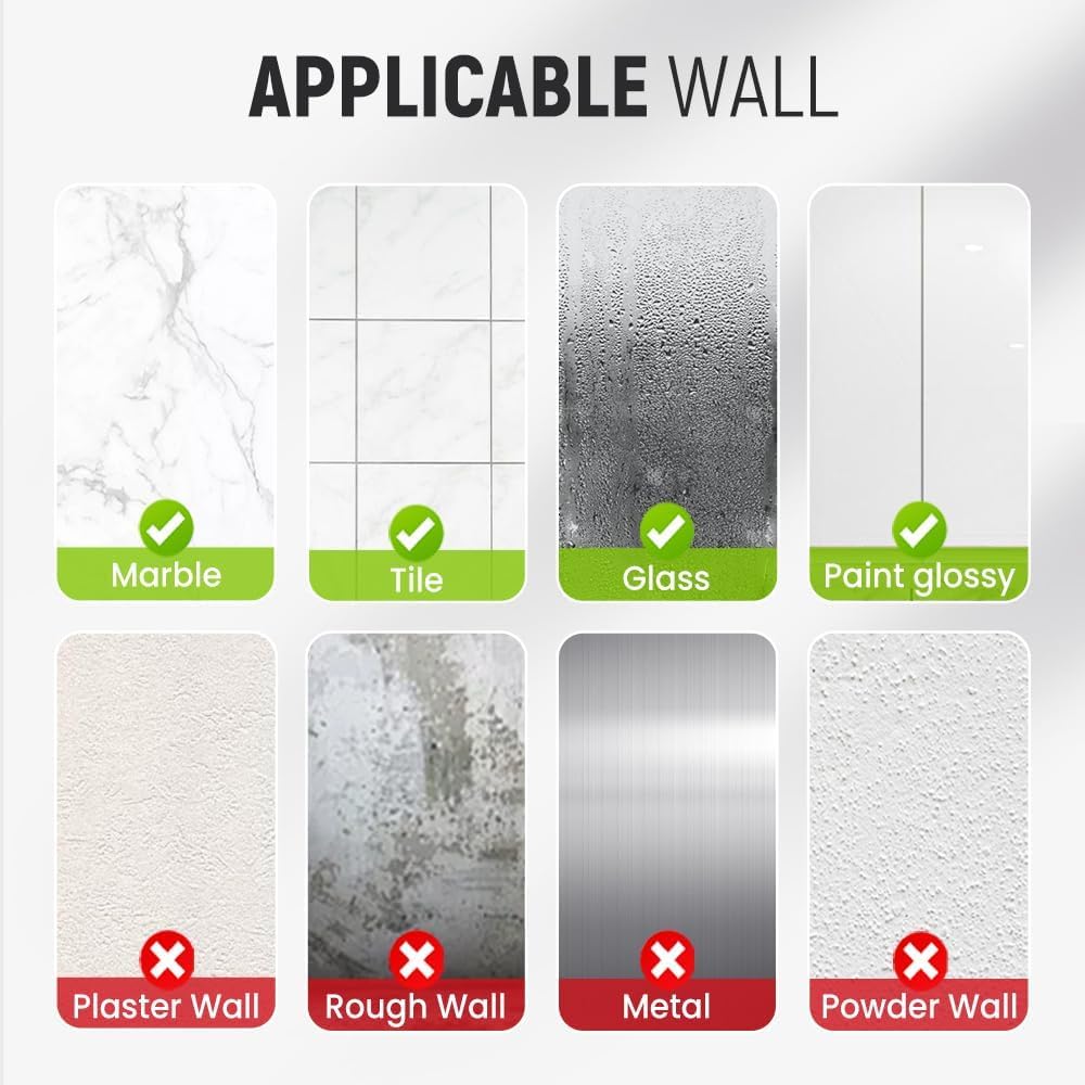 - 【Shower Hooks for Inside Shower - Suitable Surfaces】Bathroom towel hooks for wall only install to smooth, clean, flat and non-porous surface, suction shower hooks for loofah perfect for glass, mirror, smooth tiles, stainless steel, plastic, acrylic, cultured marble, smooth polished metal etc, shower towel hook cannot be install on rough surface or cement lime walls, wallpaper, non-painted wood, mosaic.