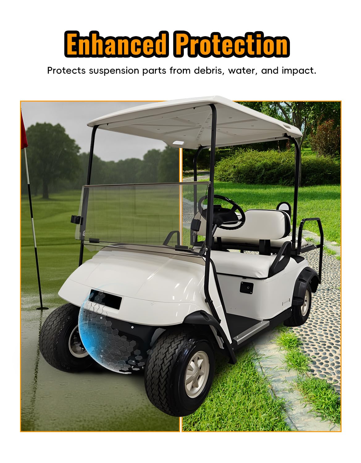 - Superior Front Protection: Easily mounts under the front cowl to protect vital suspension parts and the front body of your golf cart from rocks, debris, and everyday wear, keeping your vehicle safe and performing at its best