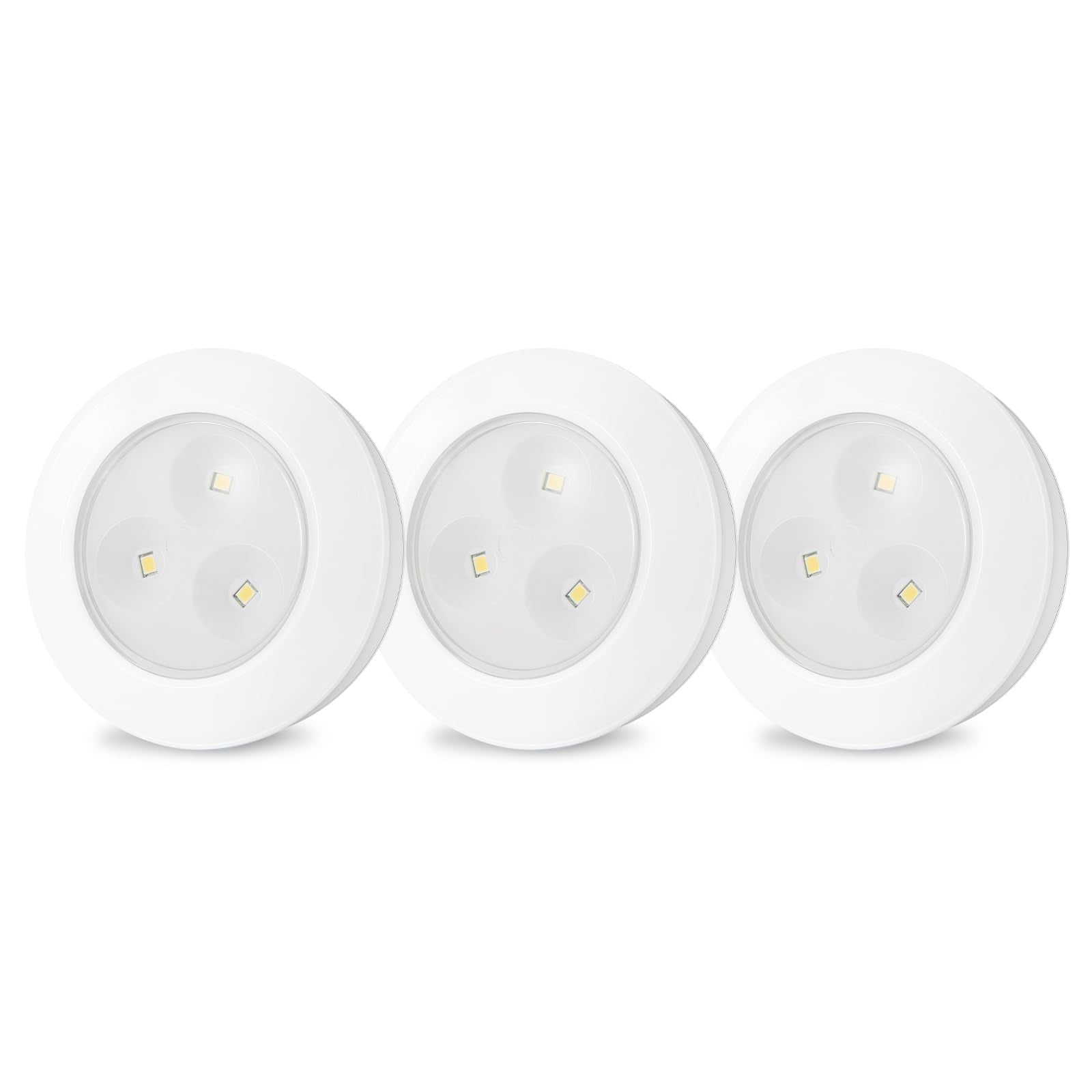 LUXSWAY LED Puck Light, Ultra-Thin Touch Light, Battery Operated, Tap Lights, 60 Lumens, Stick on Lights, Under Cabinet Lighting, Ideal for Kitchen Cabinets, Closets, Garage and More, 3-Pack, White