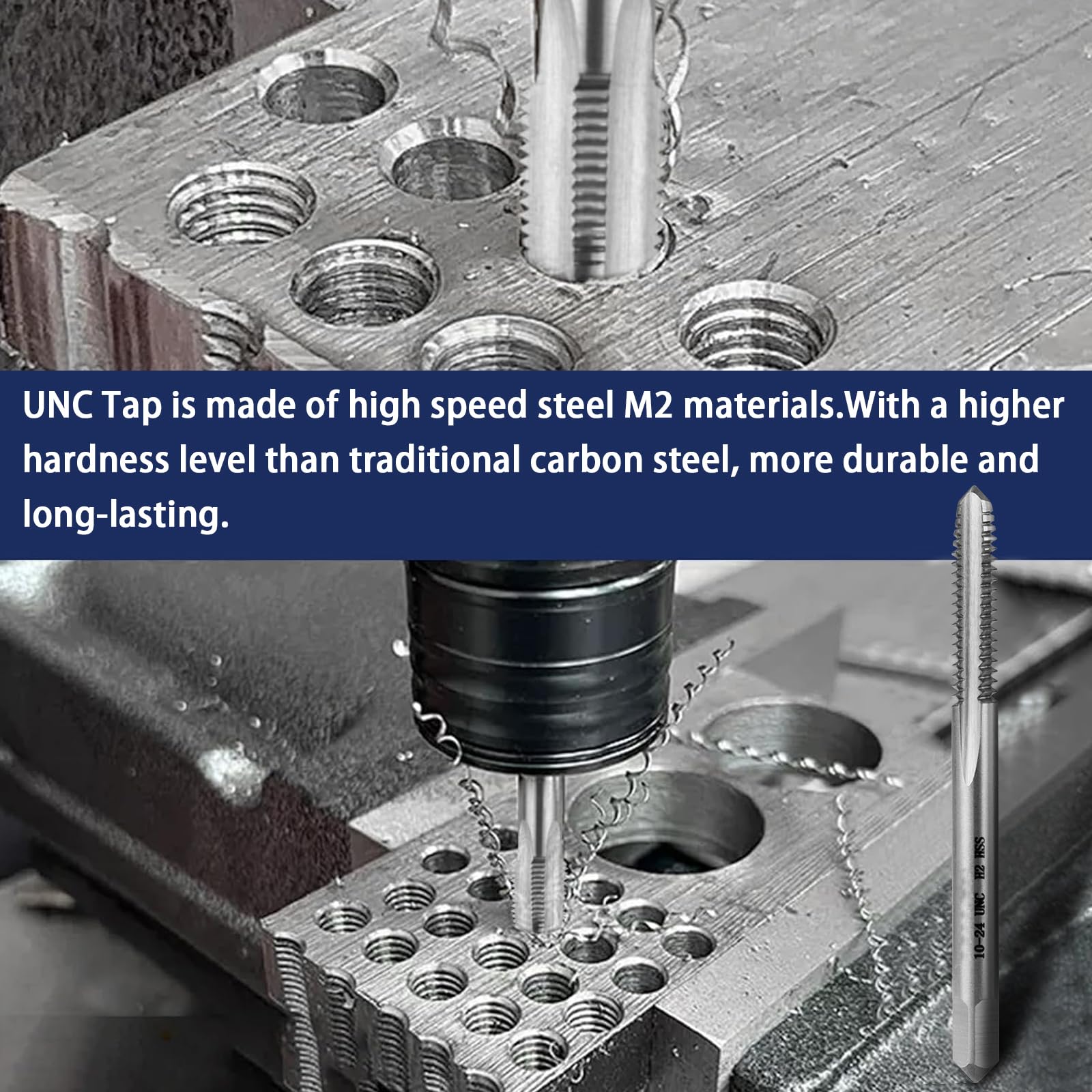 - Durable Materials — UNC Thread Tap is made of high-quality high-speed steel M2 materials.With a higher hardness level than traditional carbon steel, this pipe taps are more durable and long-lasting.