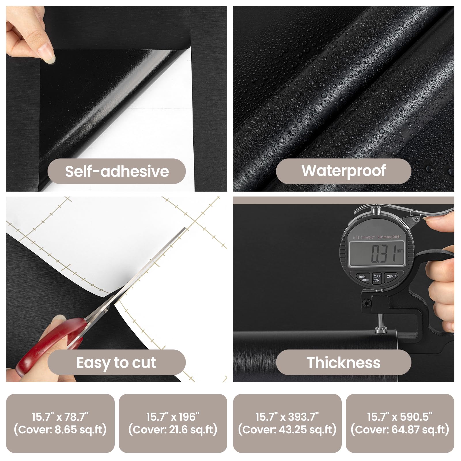 LXCREAT Refrigerator Appliance Wraps Peel and Stick Wallpaper Black Metallic Brushed Stainless Steel Contact Paper Heat Resistant Self-Adhesive Wallpaper for Dishwasher Oven 15.7" X 78.7"