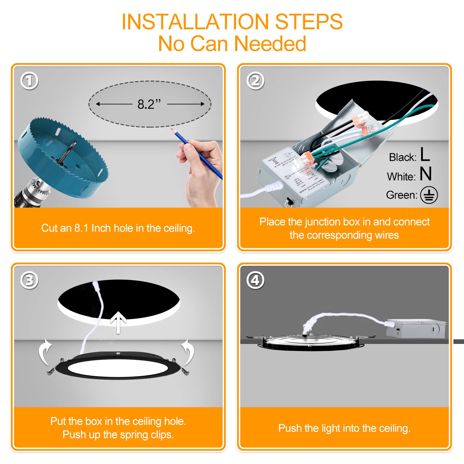 - đź’—Take notice that: 8in led received light need to cut an "8.1-8.3 inch" hole needs to be cut in the ceiling, preferably 8.2 in. Please carefully see the installation requirements in the picture before purchasing.