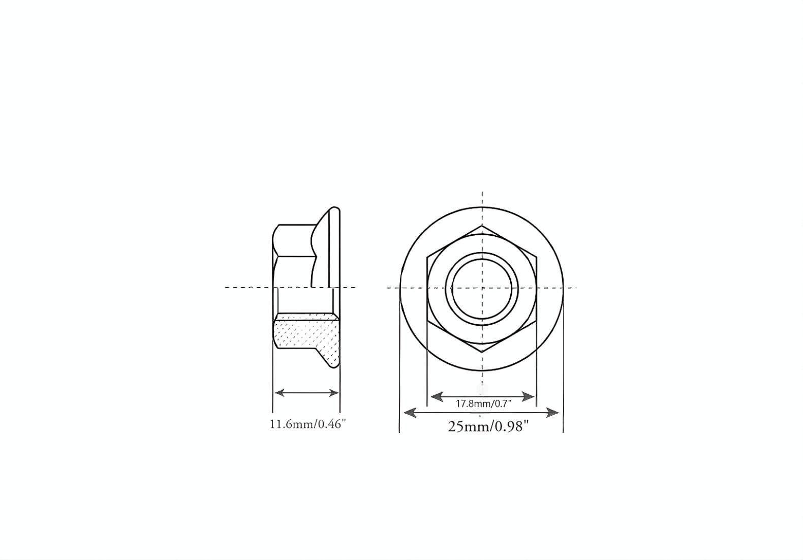 - Product Size:Nuts Diameter: 17.8mm/0.7"; Nuts height: 11.6mm/0.46"; Flange Diameter: 24.9mm/0.98"