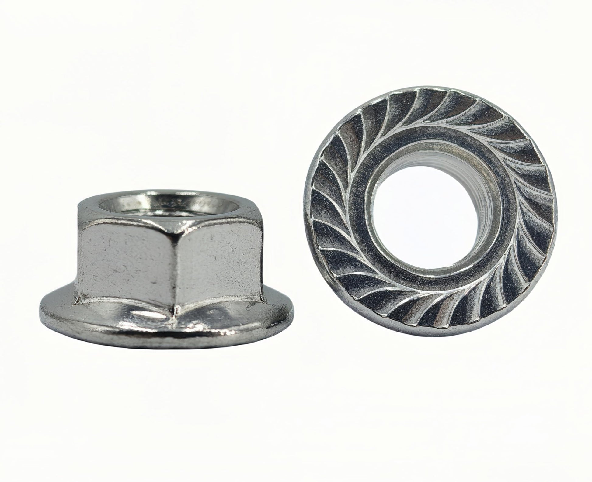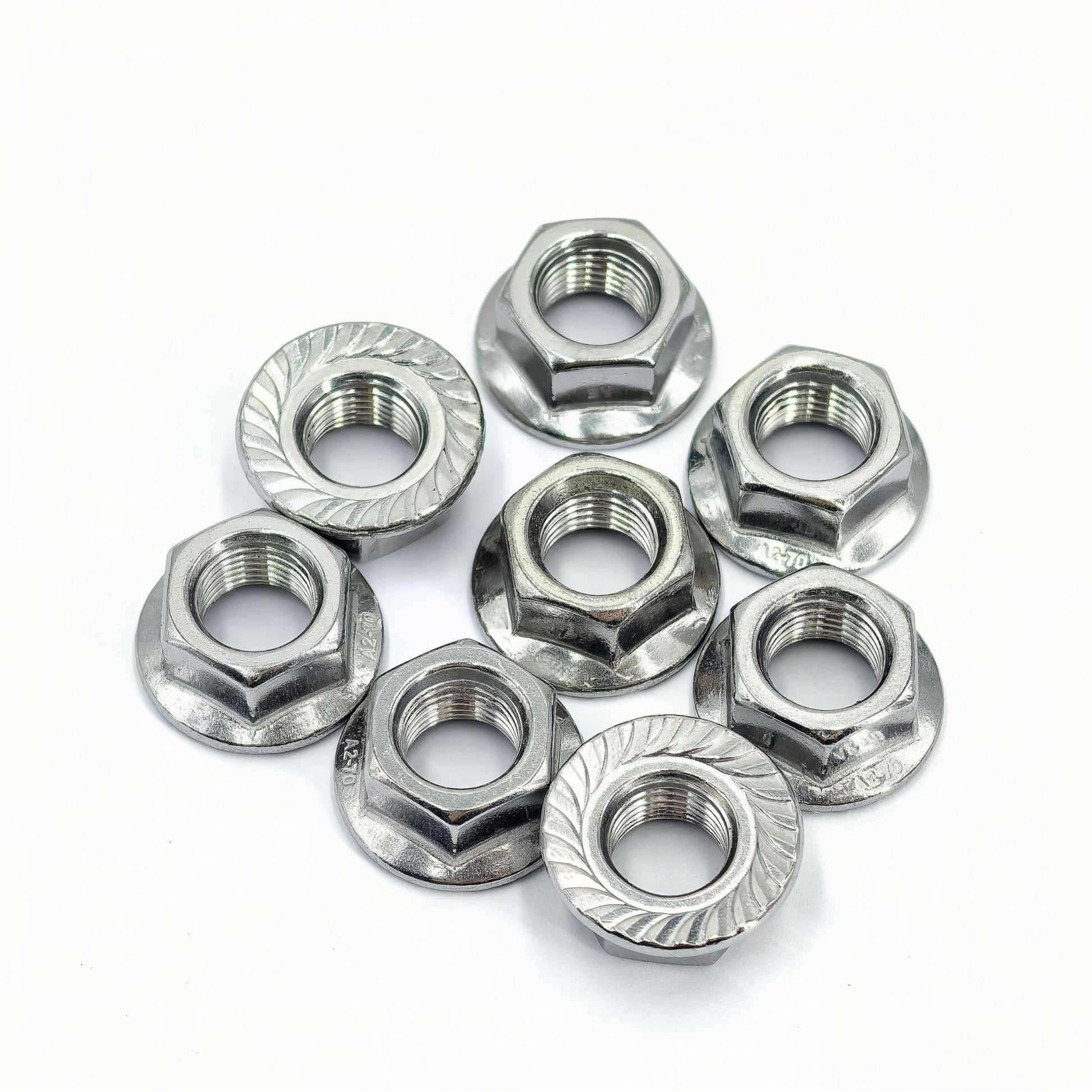 M12x1.25 Serrated Flange Hex Lock Nuts 8 Pcs 304 Stainless Steel 18-8, Full Thread, Hex Drive, Bright Finish