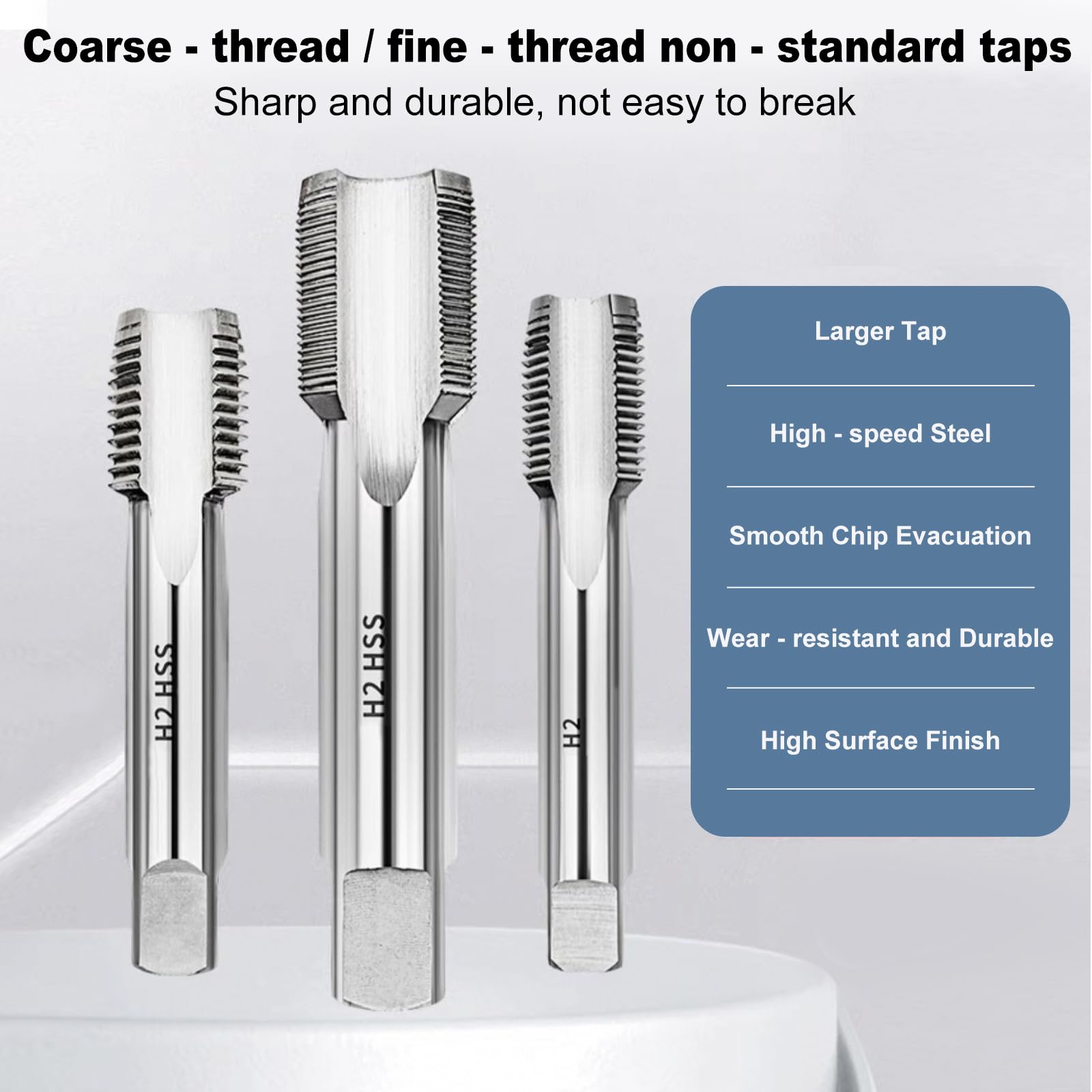- Wide Applications-Thread taps create new threads or re-thread damaged or jammed threads. Widely used for most metals, iron plate, copper, zinc, alloy steel, abrasive steel, A3 steel, stainless steel