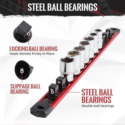- SPECIALIZED DESIGN: Incorporating a double steel ball bearing design, our organizer ensures a secure grip for the sockets. Locking steel ball bearings on the sides and smooth sliding ball bearings at the bottom guarantee effortless maneuvering along the aluminum rails