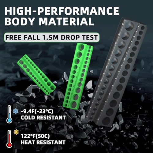 - LARGE CAPACITY STORAGE: This magnetic socket organizer set accommodates up to 143 metric and SAE sockets. Includes 3 green trays for metric sockets and 3 black trays for SAE sockets, covering 1/4", 3/8", and 1/2" drives. Note: Not compatible with impact sockets. Sockets are not included.