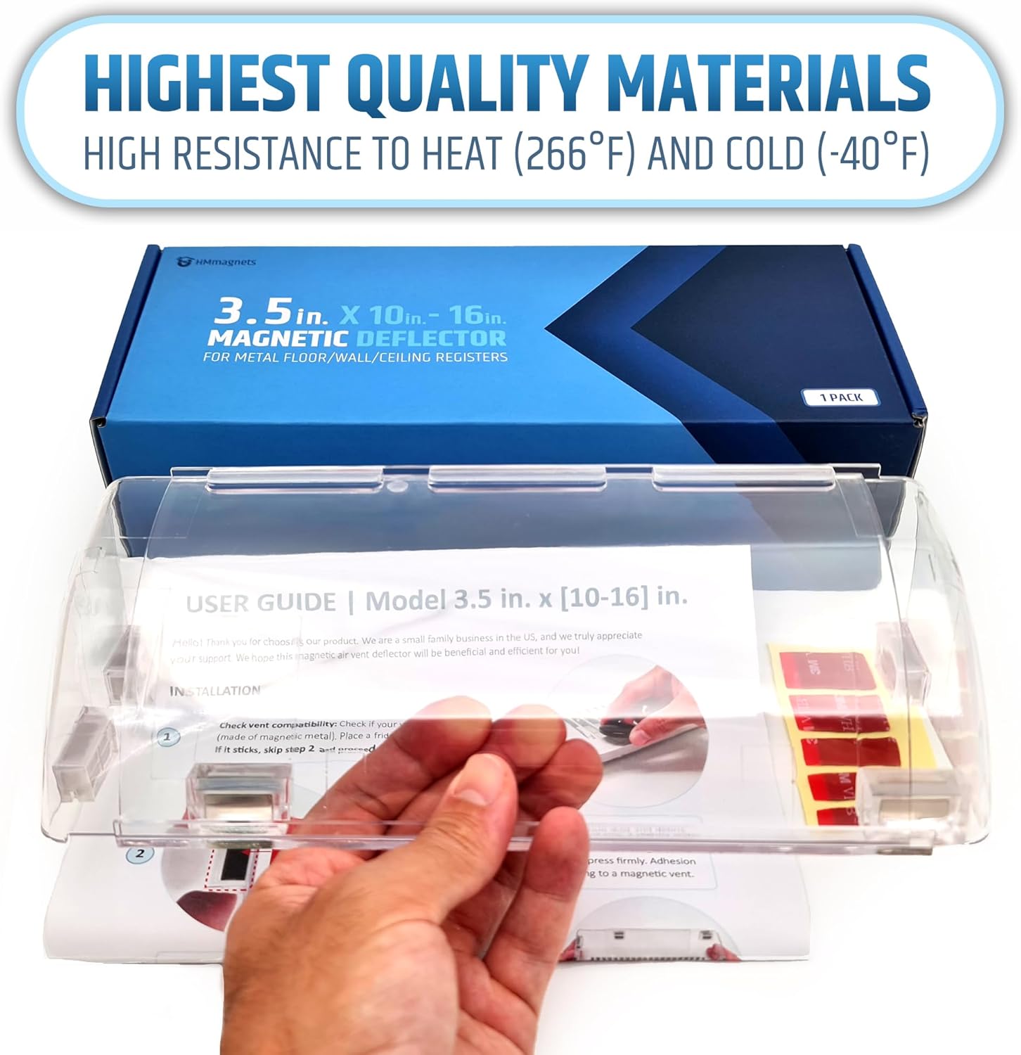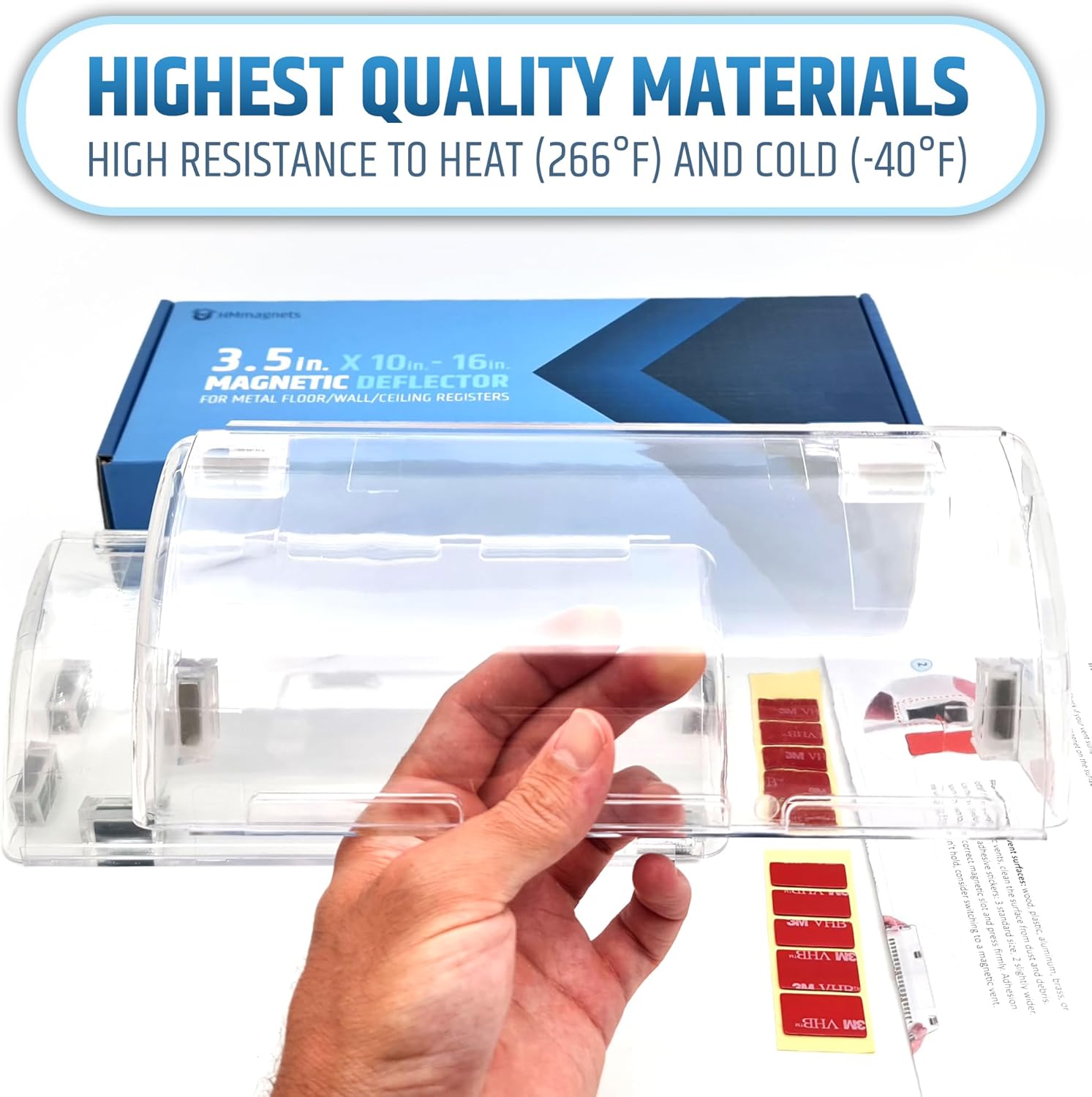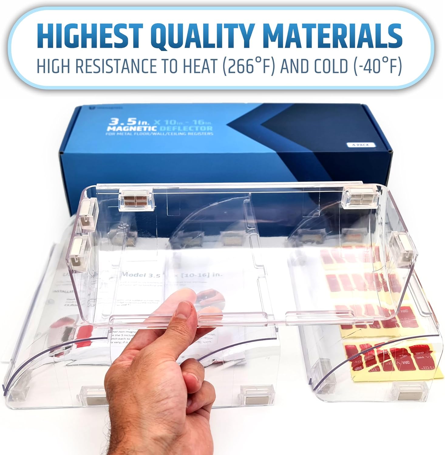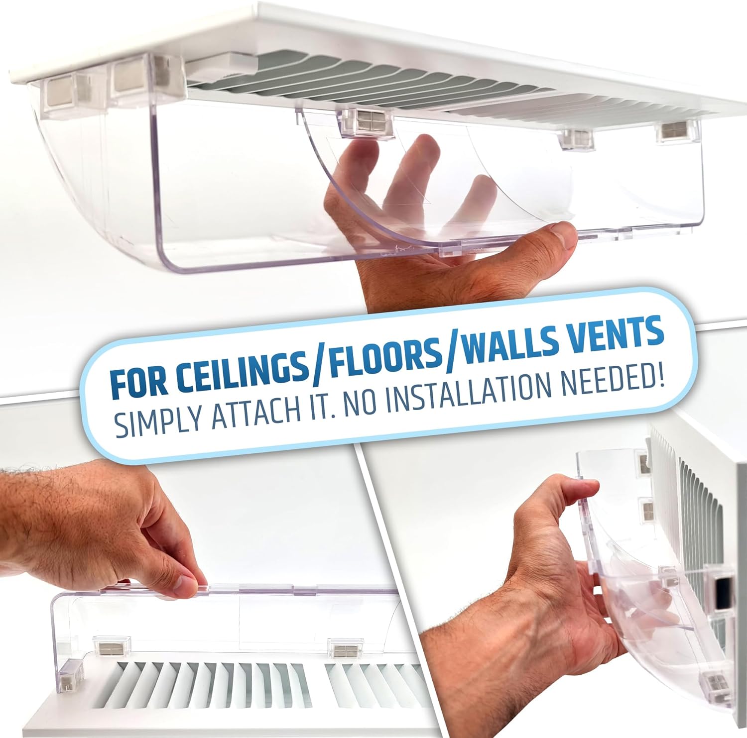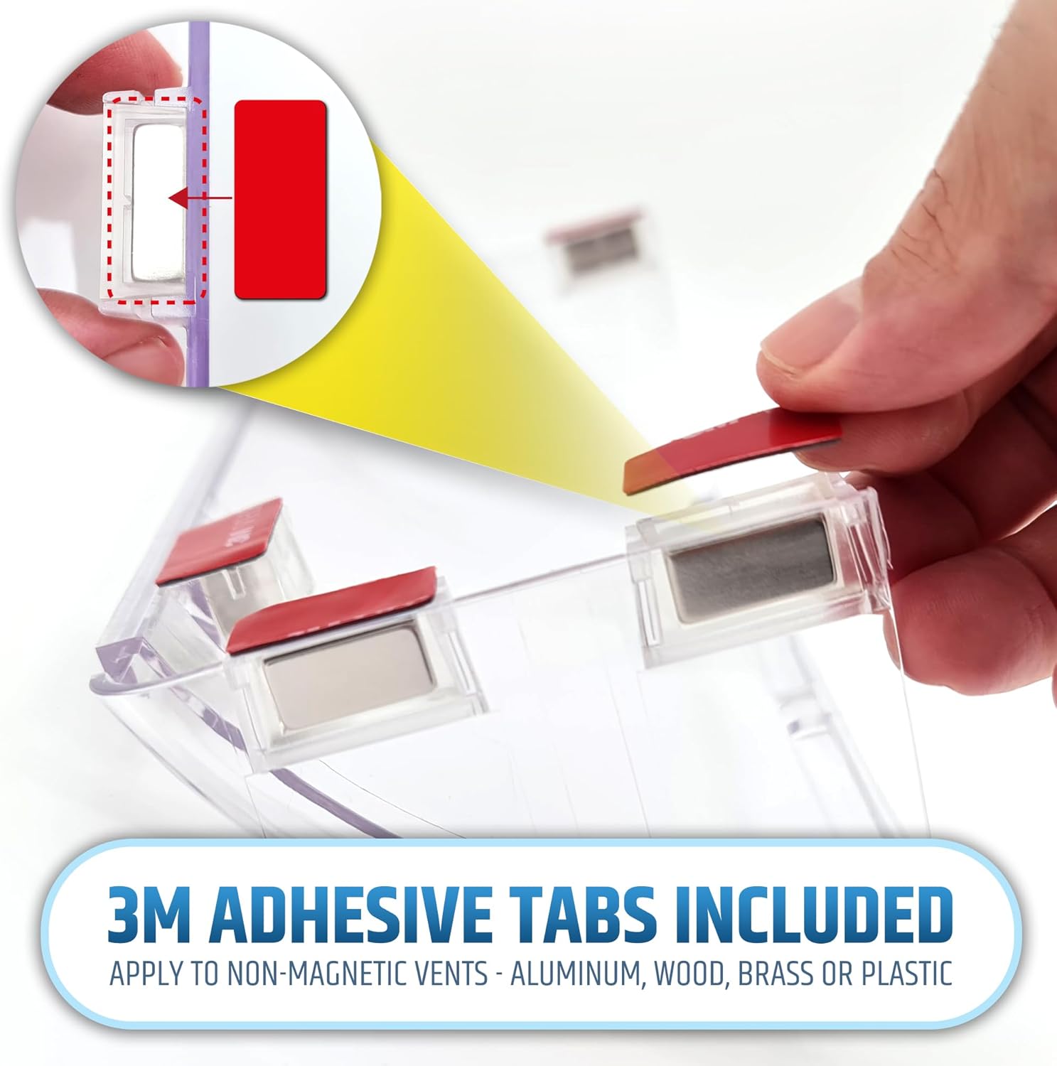 - EFFORTLESS NO-TOOL INSTALLATION: Our vent deflector requires no tools for installation. Just adjust it to the desired size, stick it to your vent, and it's ready! For non-magnetic surfaces like wood or aluminum, high-quality 3M stickers are included.