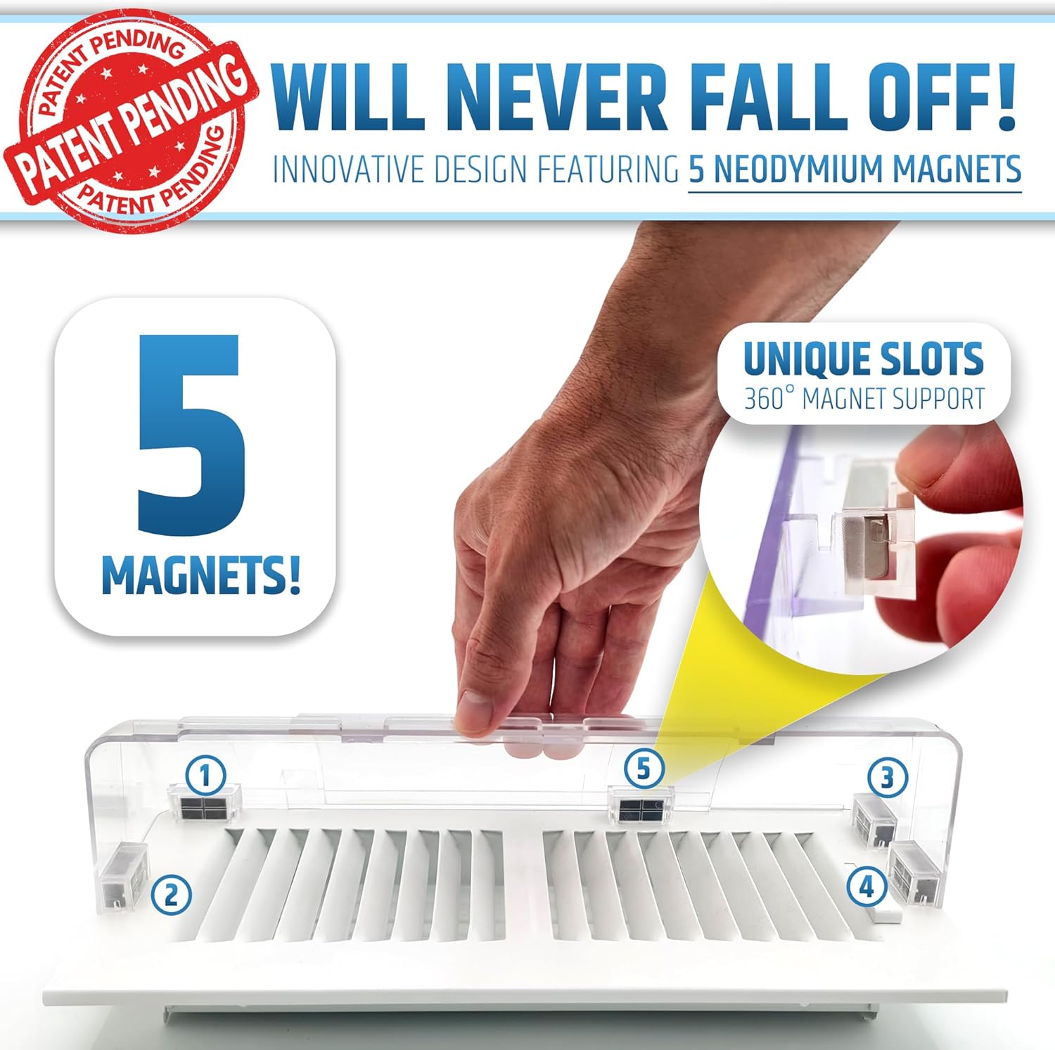 - SECURE & STABLE WITH 5 POWERFUL MAGNETS: Our patent-pending design uses 5 neodymium magnets, ensuring a strong grip on walls and ceilings. The vent deflector will never fall off, providing peace of mind even with cleaning robots or accidental bumps.